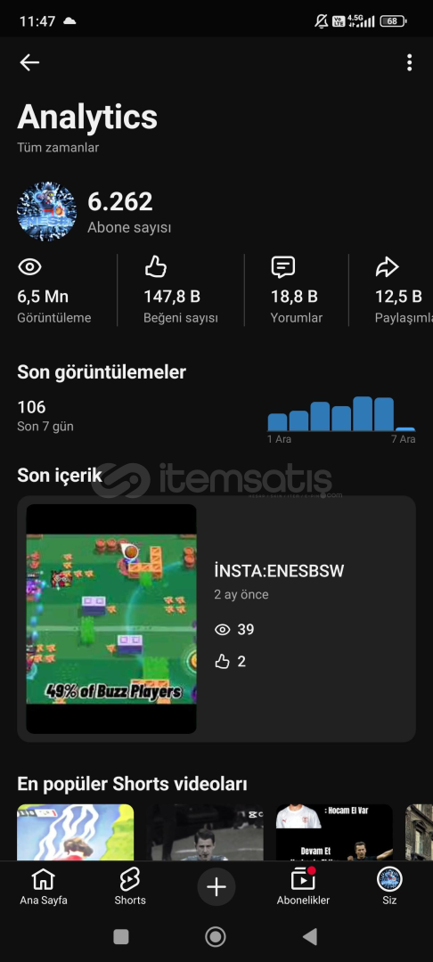 ⭐6000 Aboneli YouTube Kanalı SATILIK⭐