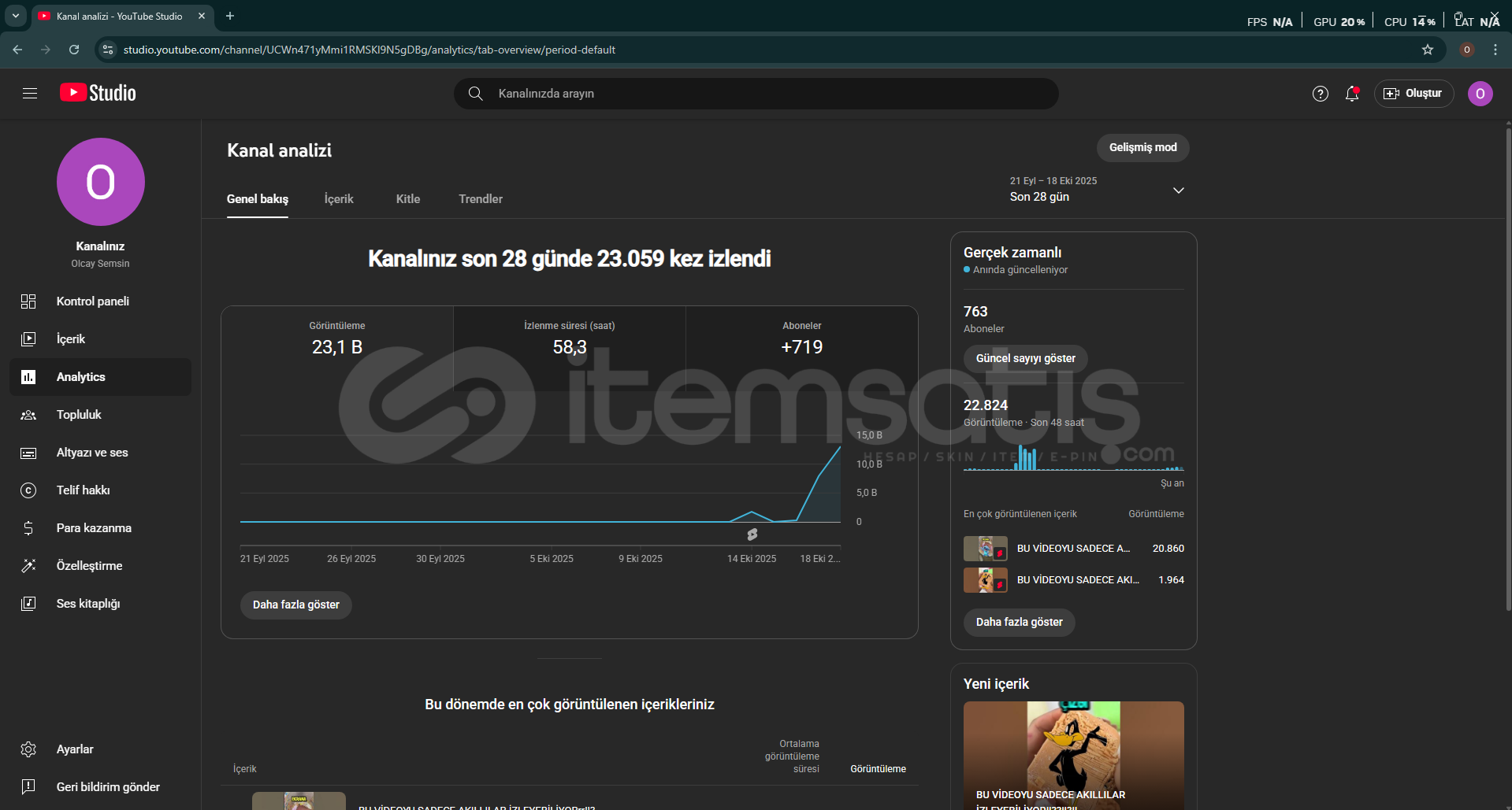 763 Gerçek Aboneli YouTube Kanalı Satılık