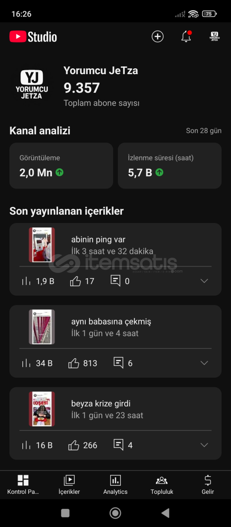 Hesapta adsense yi sildiğimden dolayı pk şuanlık kapalı başvuru falan gerektirmiyor 15 gün sonra adsensenizi ekleyip para kazanmaya başlayabilirsiniz yt hesabı içinde 1200tl adsense de 250tl bulunuyorMAİL İLE VERİLİCEK MAİLE KAYITLI ADSENSE HESABI BULUNUYOR PARA İHTİYACINDAN DOLAYI SATIYORUM https://youtube.com/@yorumcujetzaa?si=MpRqdflKjPVSv2Eb