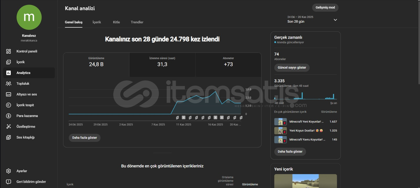 Zamanında teslimat anında iletişim, sorunsuz bir şekilde youtube hesabını teslim aldım, güvenilir kişi. Kendisine teşekkürler, guvenle alışveriş yapabilirsiniz