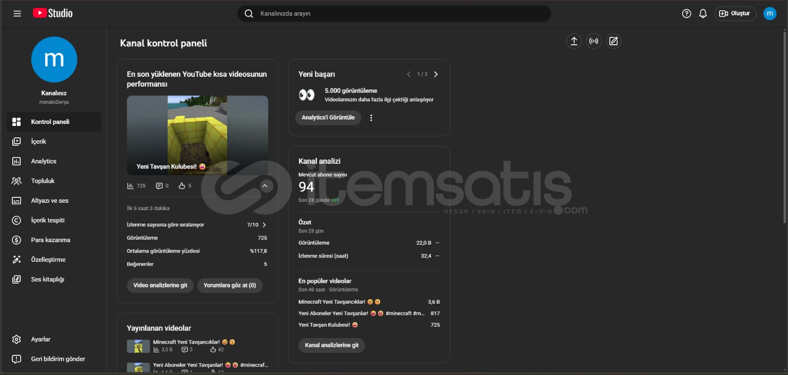 Zamanında teslimat anında iletişim, sorunsuz bir şekilde youtube hesabını teslim aldım, güvenilir kişi. Kendisine teşekkürler, guvenle alışveriş yapabilirsiniz