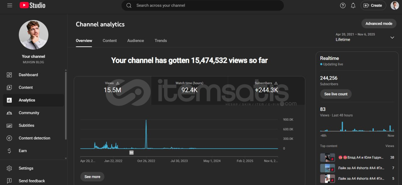 Link: https://www.youtube.com/@MUHSINBLOG1👋 244.000 abonesi olan organik bir YouTube kanalı. 2021 yılında kurulduğundan be...