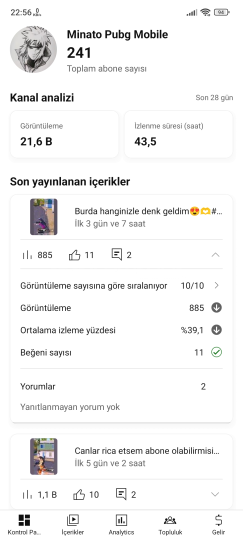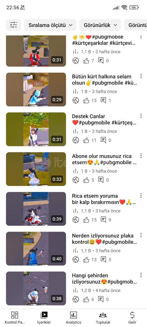 Aktif PUBG Shorts Kanalı – 21K Aylık İzlenme / 241 Abone / Hızla Büyüyor .