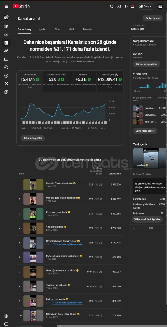 Arkadaşlar Kanal Satılıktır Fiyat 150 Bin TL Gerçek Fiyatı Bilginiz Olsun Aylık Net Geliri 15Bin TL Diğer ay 20bin 30bin bekliyorum kanal fazla diye satıyorum elimde 3 adet daha var alan kişiye videoların montajlarini anlaticam devam etmek isterse videolara sorunsuz kanal telif vs uyarı yok temiz