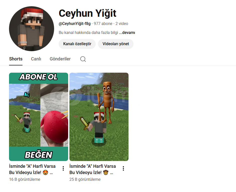 Shorts videosu atılarak kanaal büyütülmüştür.