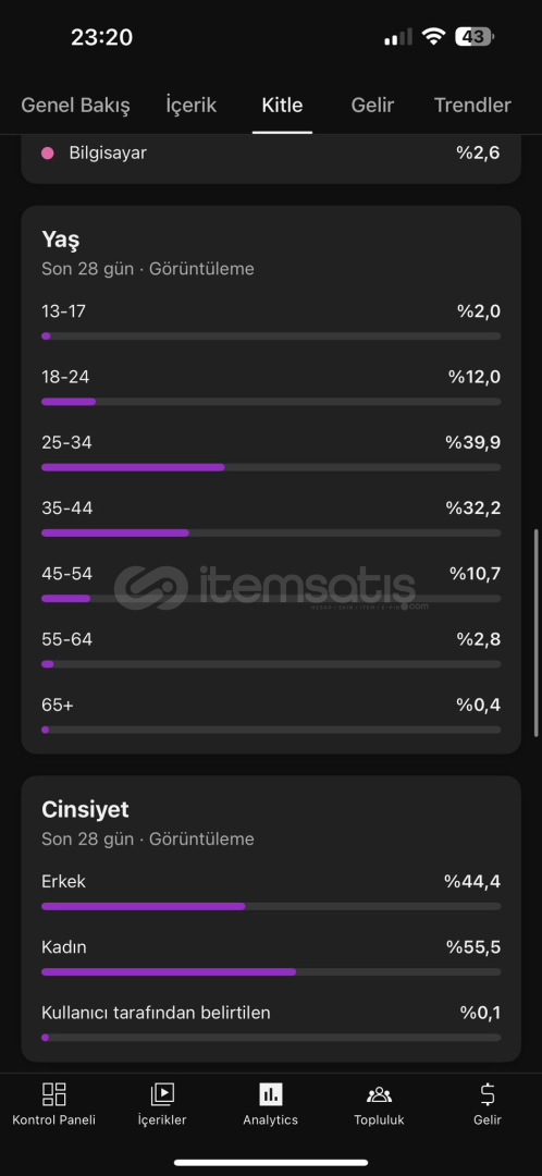 full aktif 5 yıllık youtube kanalı. kitlesi sabittir toplam 45 milyon görüntüleme vardır para kazanması a&cced...