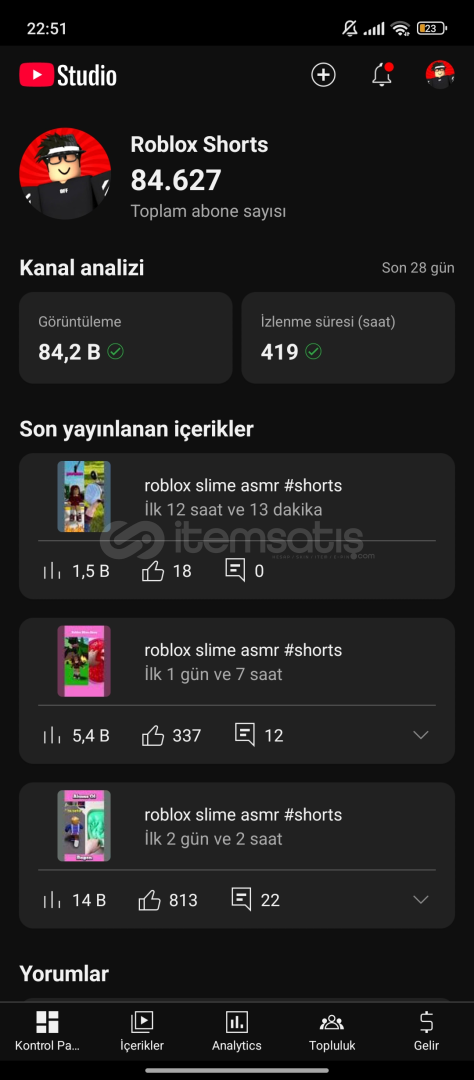 YouTube Shorts kanalı – 84 K Abone | +18M Görüntülenme | 1 senelik