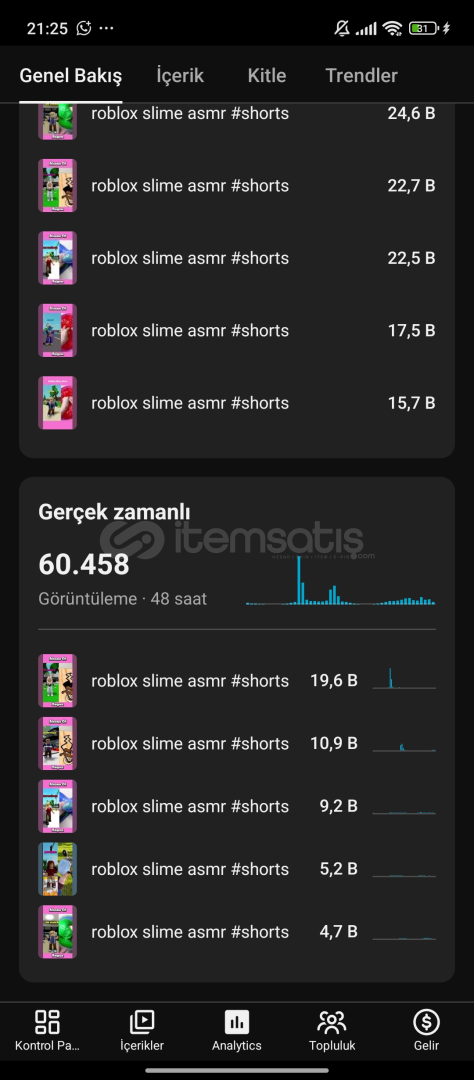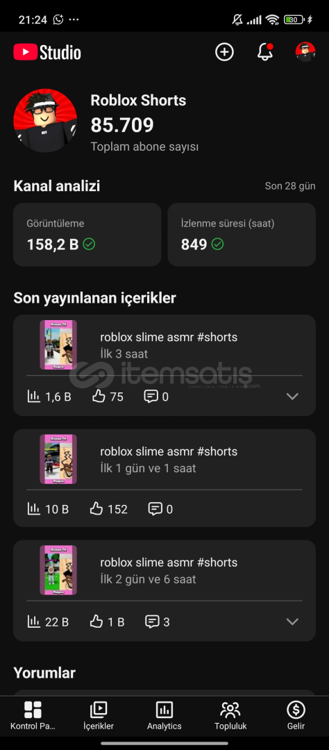 YouTube Shorts Kanalı 86K Abone | +19M Görüntülenme | 1 senelik📌Türkiye kitleli son 48 saat 60K📌 Kanal Açılış Tarihi: 15 Temmuz 2024📌 Abone Sayısı: 85.700📌 Toplam Video:11 (Kanal çok aktif)📌 Toplam Görüntülenme: 19.000.000📌 Para Kazanma Durumu: kapalı 📌 İhlal Durumu: Tertemiz kanal sorunsuz📌 Büyüme: %100 organik izlenme...