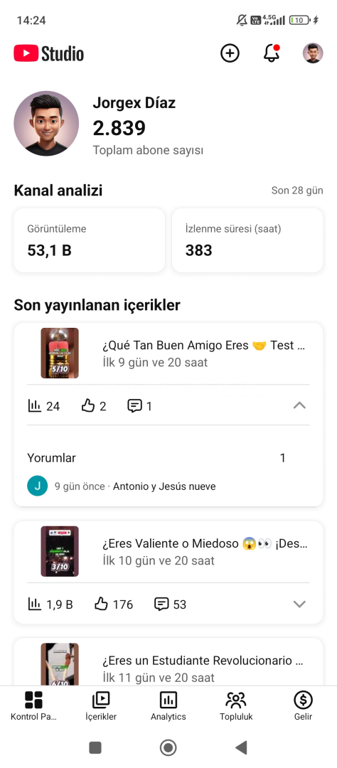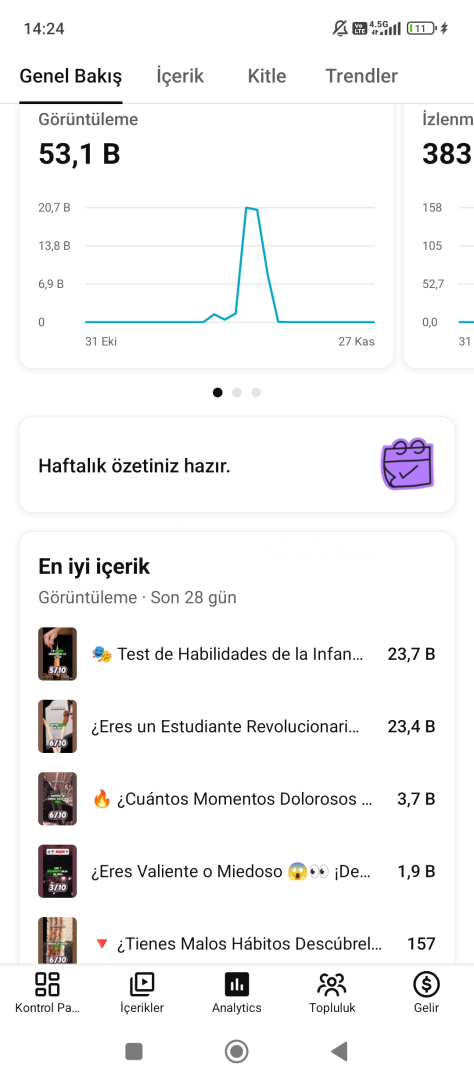 İspanyolca shorts kanalıAktifligi yüksekSon 28 günde 53k izlenmişKonsept devam edilebilir2800 abone