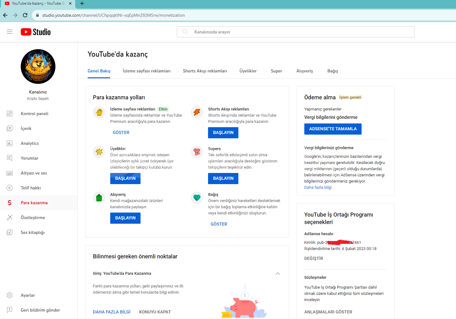 Kanal Abone Sayısı: 184.000FİYAT : 100 000 TLKANAL LİNKİ : https://www.youtube.com/channel/UChpqqktNr-xqEpMn292MSrwToplam Görüntülenme Sayısı : 93 388 681 görüntülemeİZLENME SAYISI : 642 000 SAAT Kanal Kategorisi ve Dili: Türkçe / KRİPTO PARA KANALI Hesap Kayıt Tarihi: 2021Para Kazanma Durumu ve Onay Tarihi: AÇIKKanalın aylık geliri: VİDEO BA#...