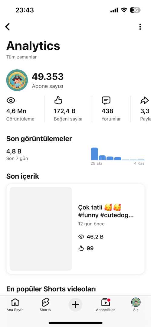Satılık YouTube Shorts Kanalı –📌 Abone Sayısı: 49500++Abone+📌 kurulum tarihi : 21 Mart 2025📌 Teslimat: Gmail + kanal şifresi birlikte teslim edilecek📌 İzlenme ve büyüme organiktir⚡ Tüm erişim ve mülkiyet devri güvenli şekilde yapılır.Ciddi alıcılar iletişime geçebilir.-%İlginiz için teşekkürler!ven! 🙌💼✨- Tes...