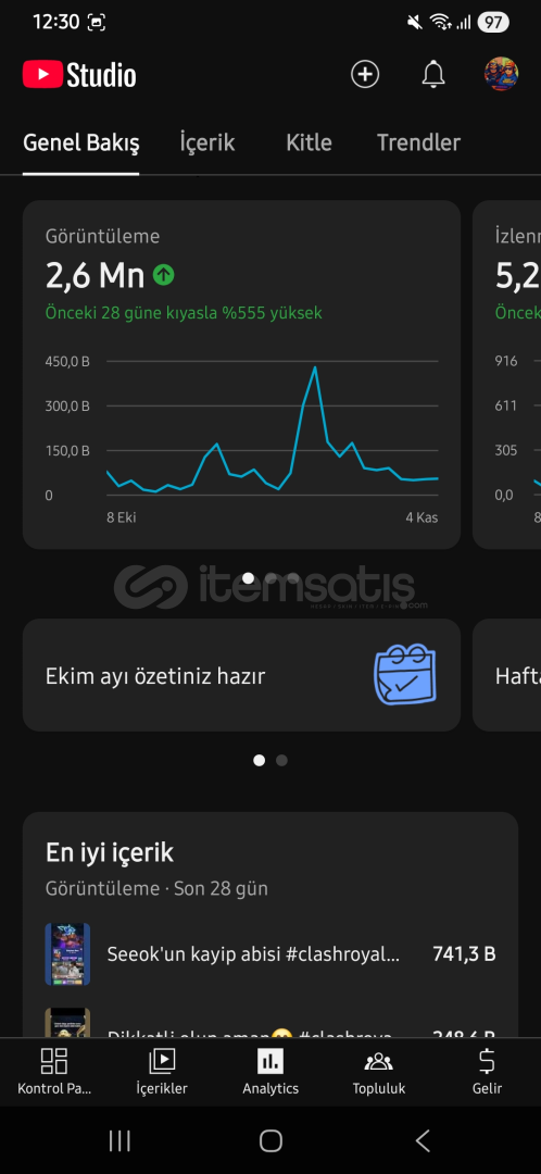 +Organik +1000 aboneli Clash Royale kanalı, potansiyeli fazlasıyla açık+3m short izlenmesi mevcut,studıoya yansıyı...
