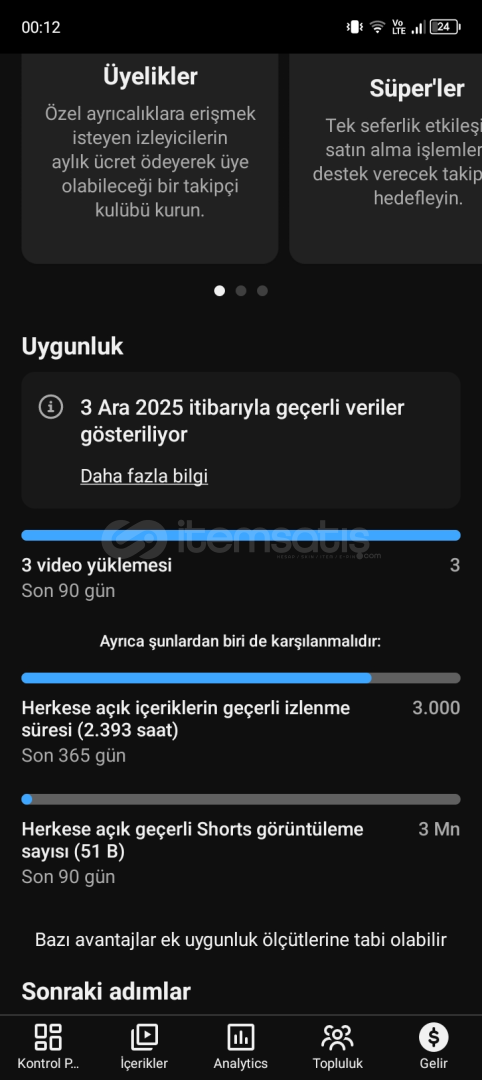 (İtemSatış satış temsilcisi, satış danışmanı v.b. adlar altında site üzerinden satış yaptığınıza dair özel mesaj gönderen kişilere inanmayın ve bu tarz durumlarda lütfen canlı desteğe bağlanarak durumu bildirin.)