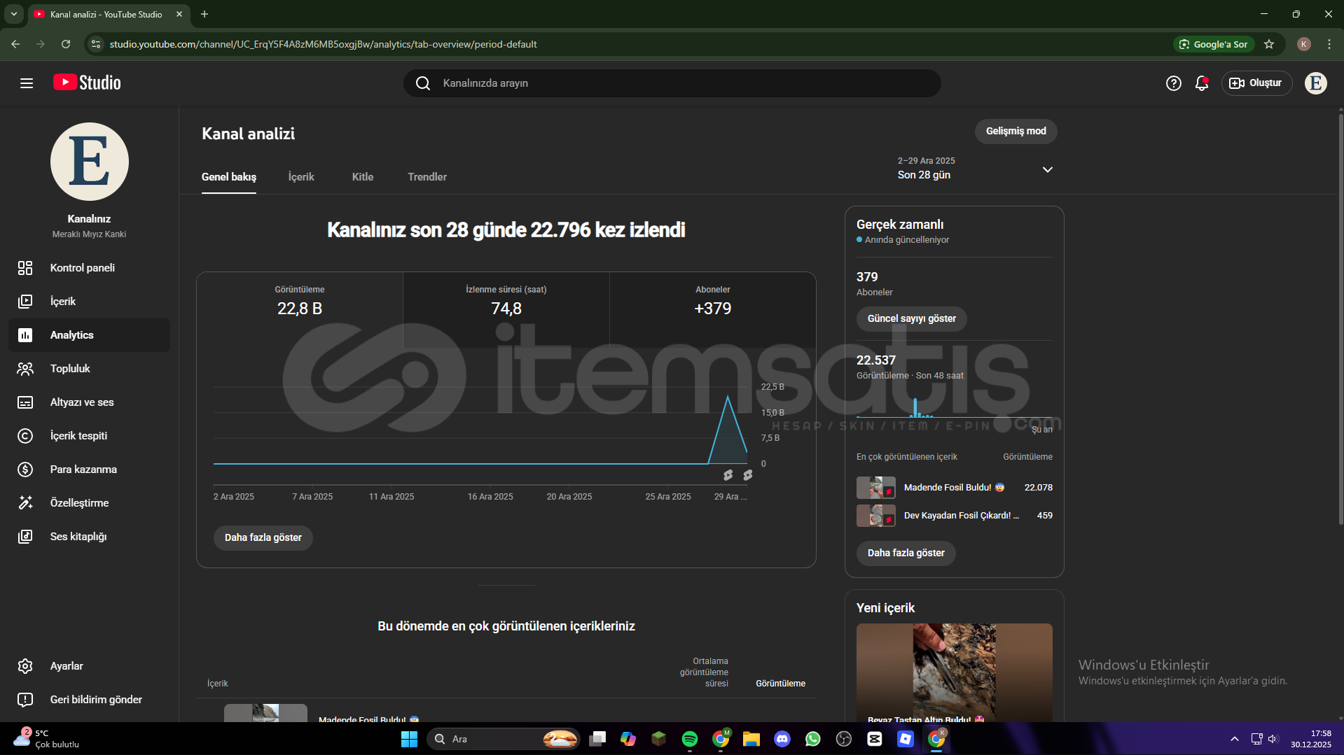 Kanalımız 378 abonedir