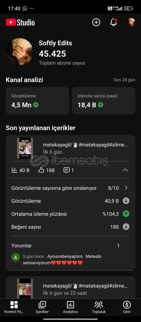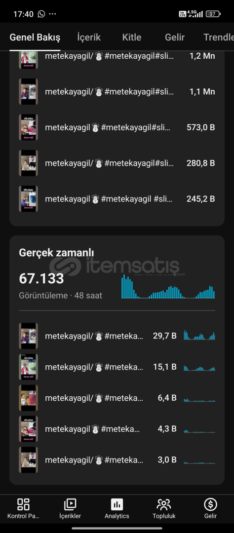 YouTube Shorts Kanalı 45K Abone | +11M Görüntülenme Son 48 saat 70K izlenme📌 Türk kitle YouTube’a sağlam bir başlangıç yapın. Şimdi güvenle satın alın!📌 Kanal Açılış Tarihi: 24 Şubat 2024📌 Abone Sayısı: 45.500📌 Toplam Video:131 (Kanal çok aktif)📌 Toplam Görüntülenme: 11.000....