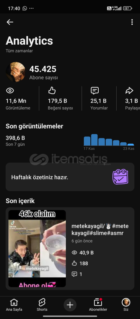 YouTube Shorts Kanalı 45K Abone | +11M Görüntülenme