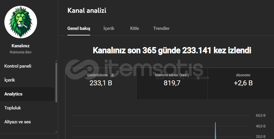 🎮 Kanal Satışı 🎮 KANAL ADI: Robloxda Ben 👥 Abone Sayısı: 2000+ 📈 İzlenme Sayısı: 200.000+ 💰 Fiyat: 3250TL Roblox severlere hitap eden bu kanal, trend içeriklerle büyük bir izleyici kitlesine ulaşmış durumda! 🚀 Kanalda yer alan içerikler, Roblox dünyasında ilgi gören ve popüler olan konuları kapsıyor. Ama merak etmeyin, istediğiniz i&cce...