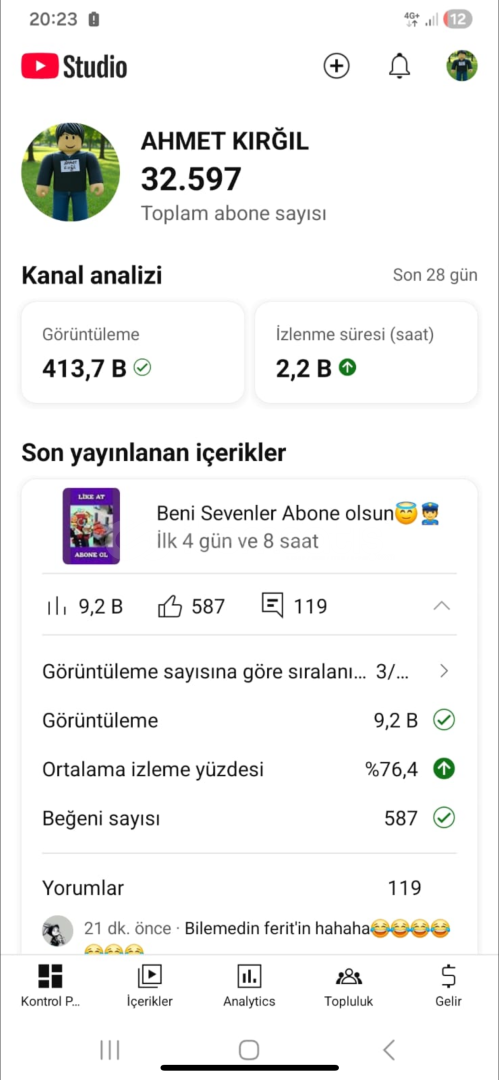 Türkçe çok aktif 32 k aboneli kanal 1 ihtar var