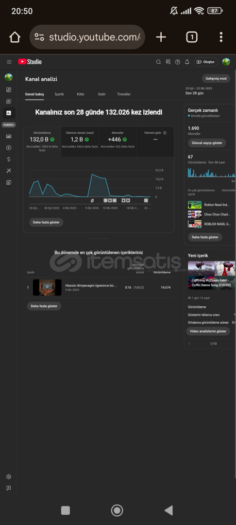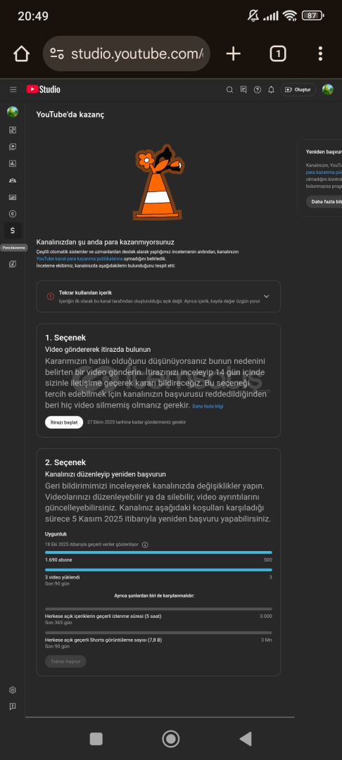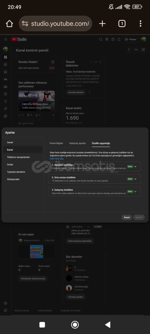 Merhaba kanal uzun video kanalıdır eski videolar tekrar içerikten dolayı sildik yeniden uzun videolar yükleniliyor tüm doğrulamalsrı yapılı 1 adet süreli telifi var fiyat uygun tutuldu