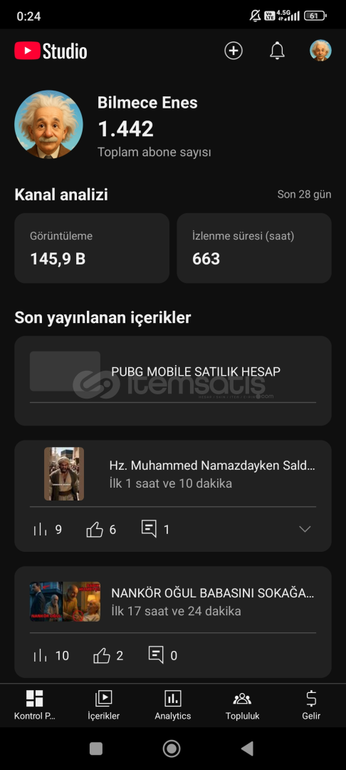 Hesap mail ile teslim edilecek yeni kanal algoritma sağlam fiyat uygun alana hayırlı olsun