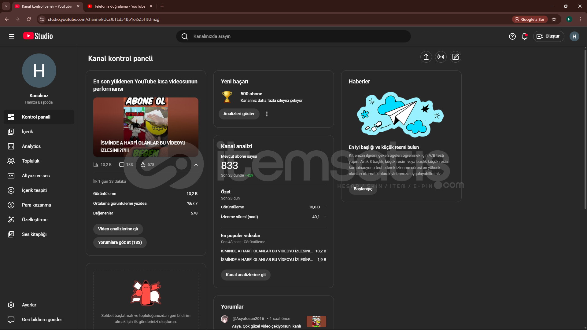 -İsteğinize Bağlı Telefon Doğrulaması Yapabiliriz Kanala!-Abonelerin Hepsi Gerçektir Asla Bot Abone Veya İzlenme Yoktur-Hesapda Düzenli Olarak Video Atmaya Devam Ederseniz Çok Hızlı 100k Aboneye Ulaşabilirsiniz!-Hesabı Alan Kişiye Hesabın Gmail Adresiyle Birlikte Verilecektir!