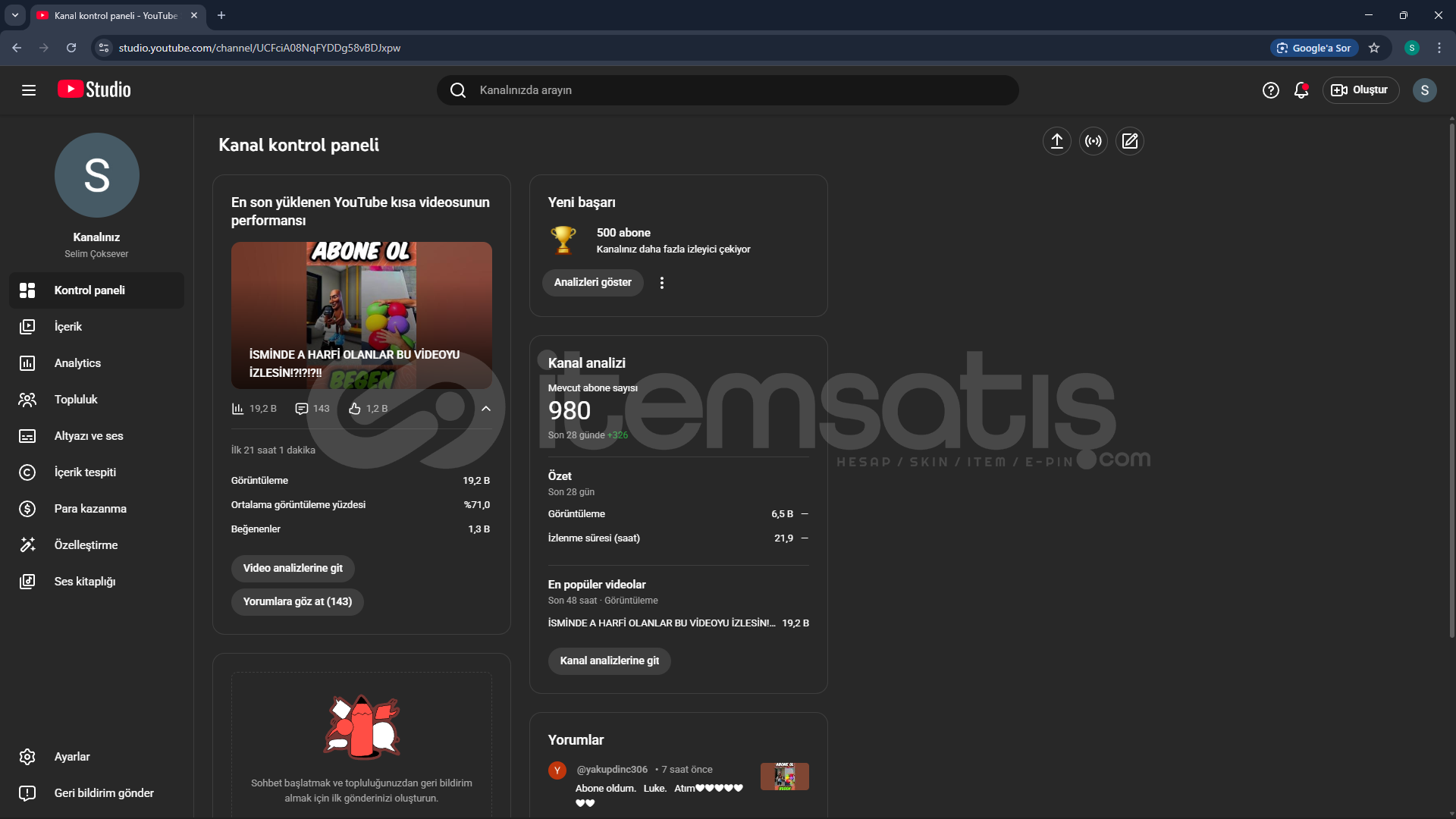 -İsteğinize Bağlı Telefon Doğrulaması Yapabiliriz Kanala!-Abonelerin Hepsi Gerçektir Asla Bot Abone Veya İzlenme Yoktur-Hesapda Düzenli Olarak Video Atmaya Devam Ederseniz Çok Hızlı 100k Aboneye Ulaşabilirsiniz!-Hesabı Alan Kişiye Hesabın Gmail Adresiyle Birlikte Verilecektir!