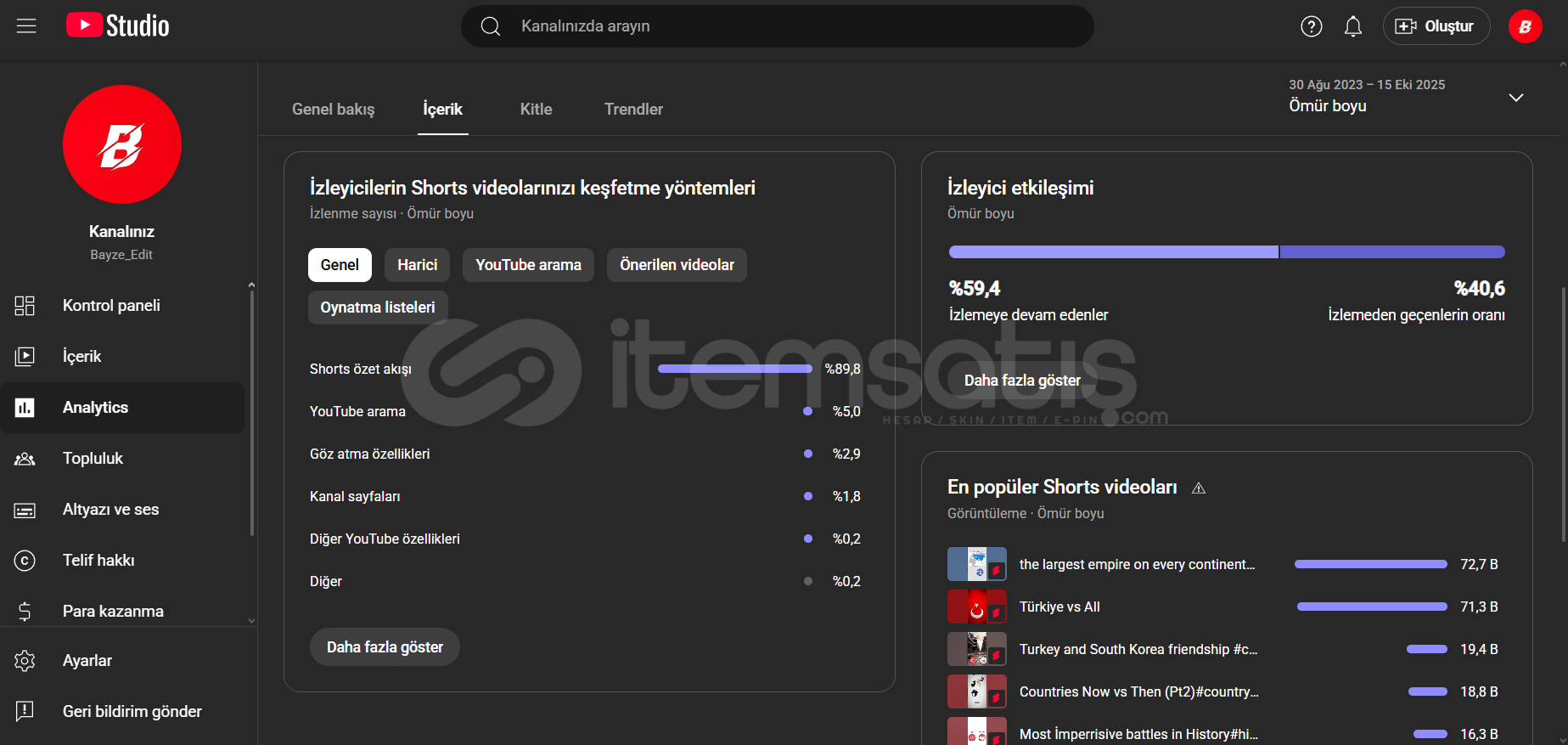 Etkileşimi fazla shorts kanalıdır.