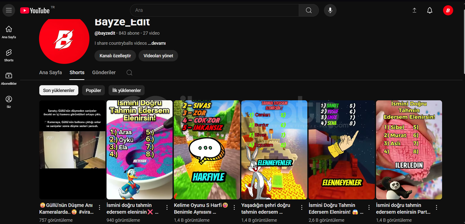 843 abonesi var anlık.352K izlenme almıştır.Etkileşimi fazla shorts kanalıdır.Shorts üzerinden devam edilirse pk açılabilir.Yeni başlayacak olanlar için avantaj kanaldır.