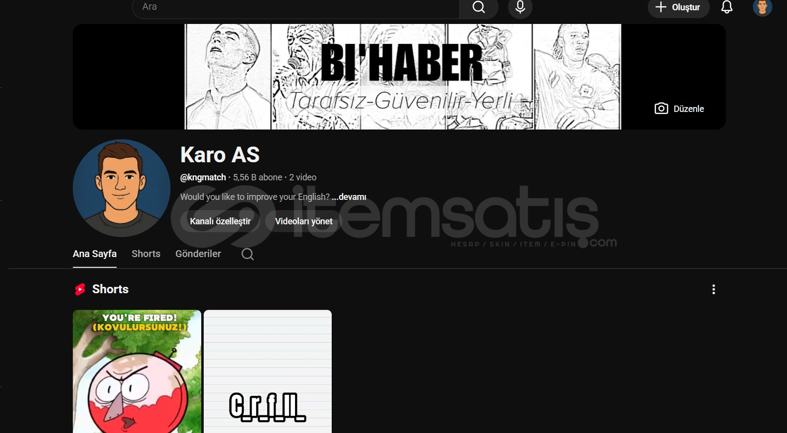 YOUTUBE DA 5.548 ABONELİ KAROAS ADLI KANALIMIZI SATIŞA ÇIKARDIK HAYIRLI OLSUN.