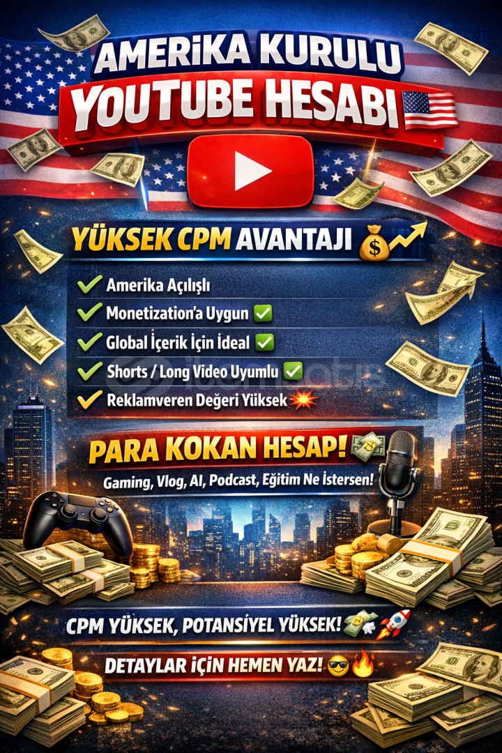 📈 Yüksek CPM avantajı ABD lokasyonlu olduğu için reklam gelirleri TR/EU hesaplara göre çok daha yüksek 💰✅ Amerika açılışlı ✅ Monetization’a uygun ✅ Global içerik için ideal ✅ Shorts / Long video uyumlu ✅ Reklamveren değeri yüksek🎯 Gaming, vlog, AI, podcast, eğitim, shorts fark etmez — para kokan hesap🚀 Sıfırdan kasmakla...