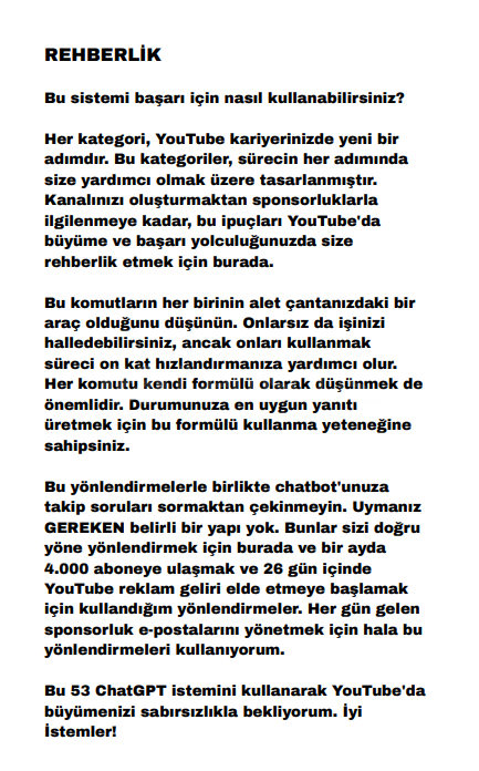İÇİNDEKİLERREHBERLİKBu sistemi başarı için nasıl kullanabilirsiniz?KANAL OLUŞTURMAGüzel bir kanal ve plan oluşturun.VİDEO OLUŞTURMASaniyeler içinde ilgi çekici videolar oluşturun.VİDEO OPTİMİZASYONUVideolarınızı en üst düzeyde başarıya ulaştırmak için optimize edin.PARA KAZANMA VE BÜYÜMEKanalınızı paraya çe...