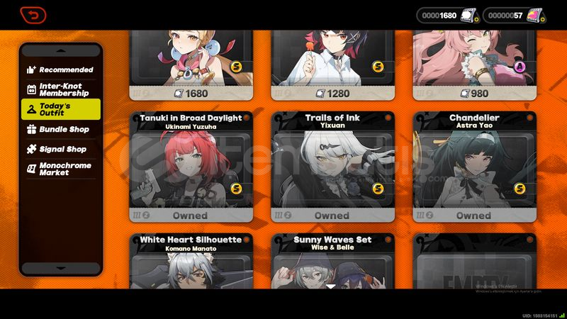 Hesapta 1680 monochrome vardır gene kostüm alabilirsiniz13 günlük membership vardırWise&Belle kostümleri vardırevent banner 70pt dirsilah banner 14ptstandart banner 20pt ve 288/300 12 tane daha atsanız istediğiniz standart karakteri seçip alabilirsinizYixuan M1+bis+skinYazuha+bis+skinEvelyn+bis*2Miyabi+bisYanagi+bisLycaon M3+bis 2 taneSoldier 11 M1+bis*2DialynYidhariAstra yao+skinRinaKoledaHarumasaPan Yinhu M6Pulchra M6Nicole M6Seth M6Piper M6A...