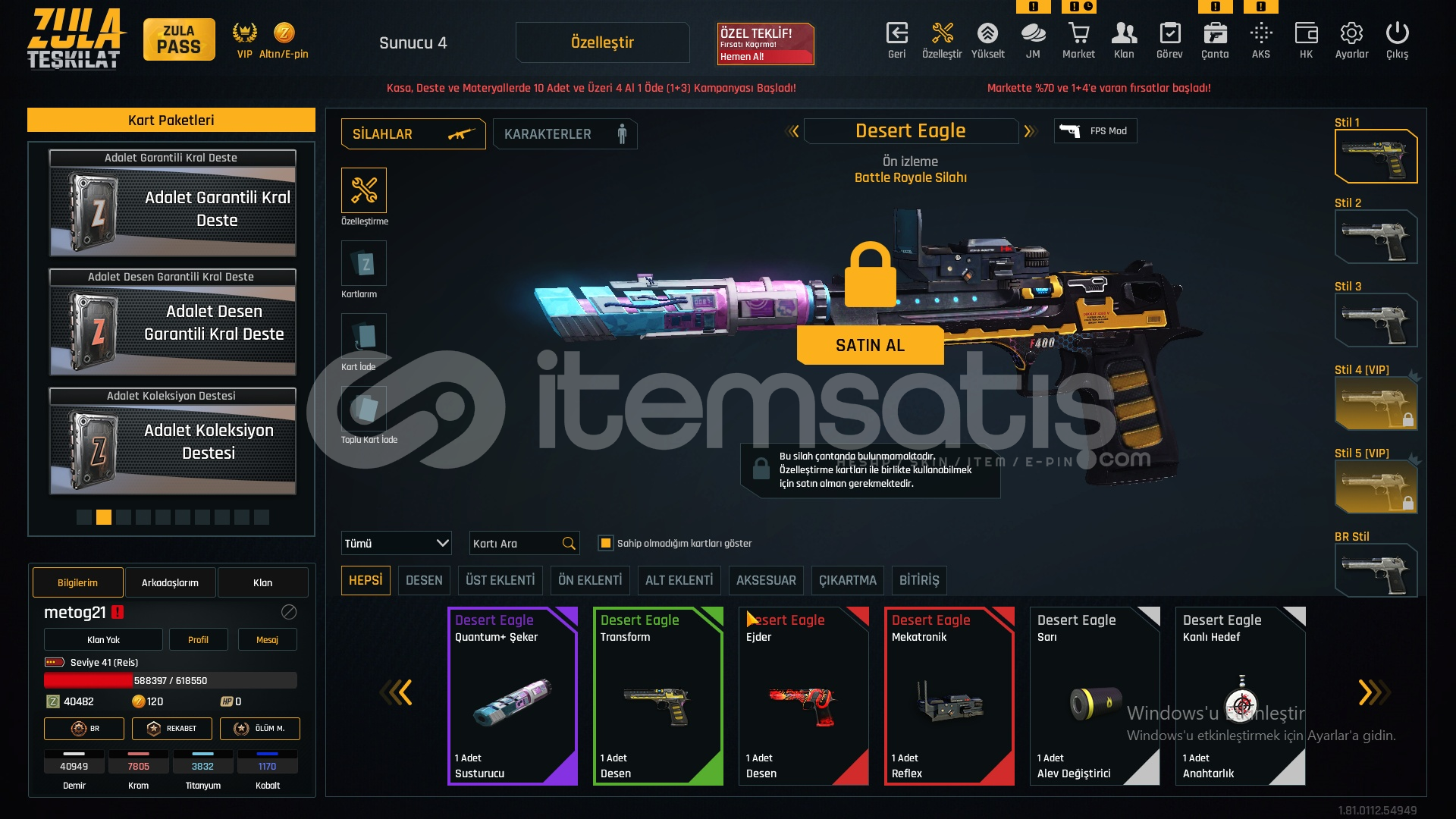 ⭐️HESAPTA FAZLA ARTILI SİLAH YOKTUR AMA 50K MATERYAL VARDIR KENDİNİZ İSTEDİĞİNİZ SİLAHLARA ARTI BASABİLİRSİNİZ
