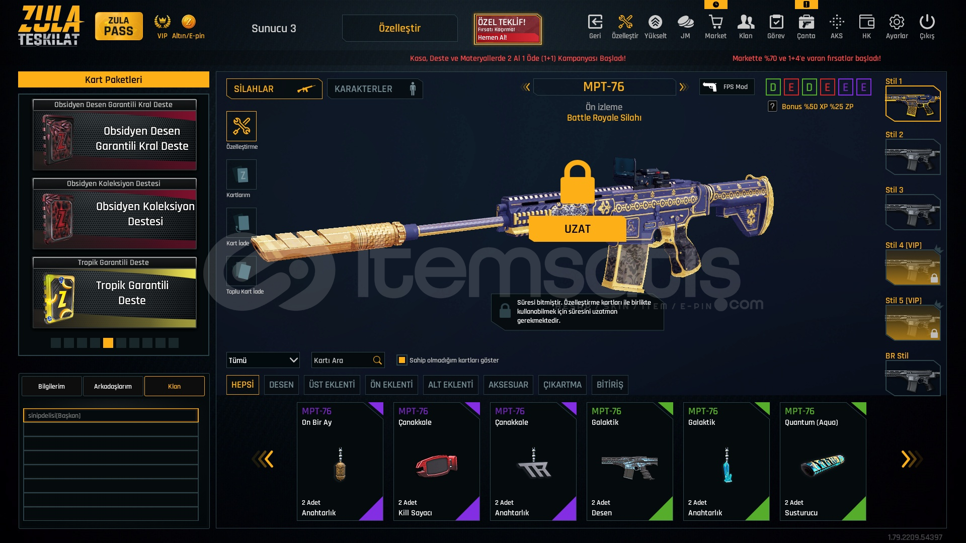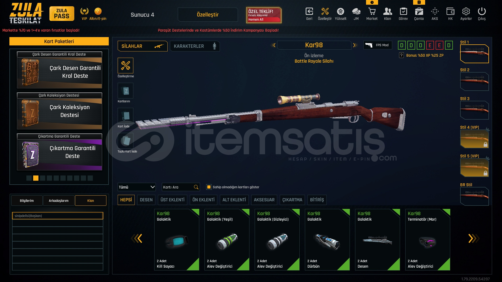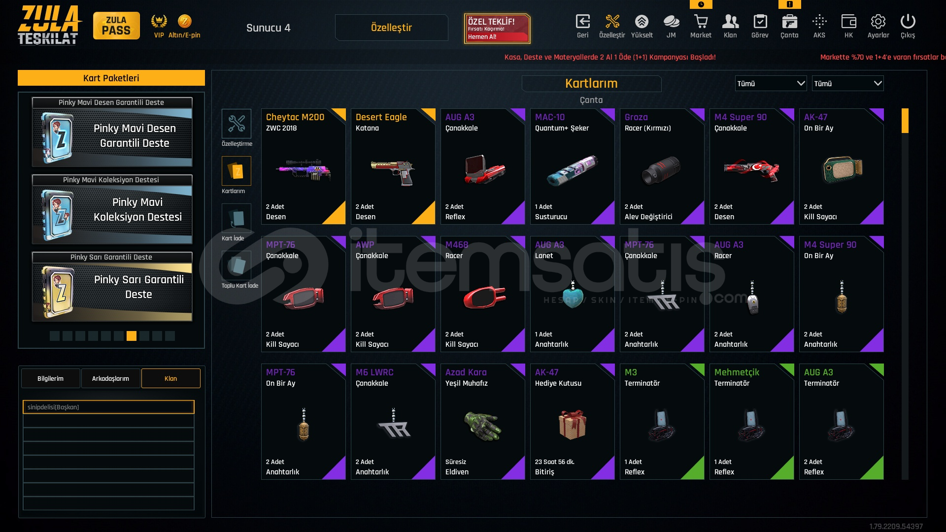 Hesapta oyunun en nadir zwc cheytac deseni vardıre spor lisansı vardı kaldırıldı fakat hala profilde gozukuyor2.34 kd elit rankhesapta bütün metalarda quantum vardır+7 aug kar98diger metaların cogu +6 dır zulapass cekerseniz cogunu fullersiniztel ve mail saglamhesaba girdiginiz gibi direk takma ad kullanılmıs olcak 7 adet varken 6 adet kalıcak