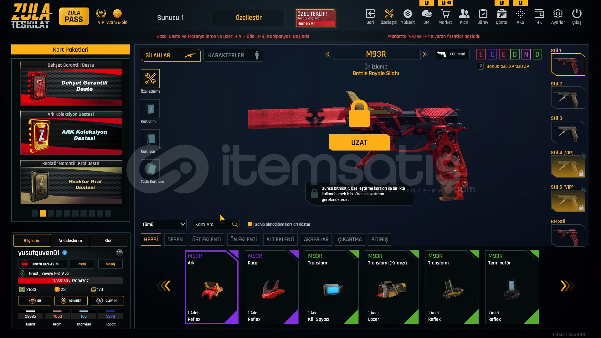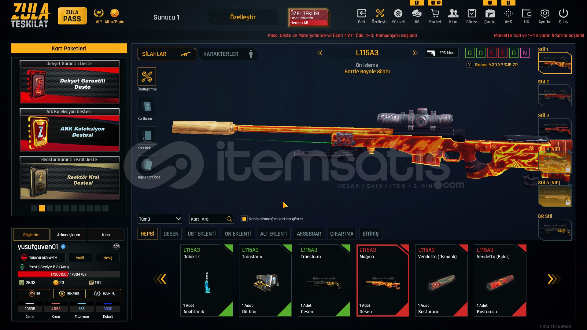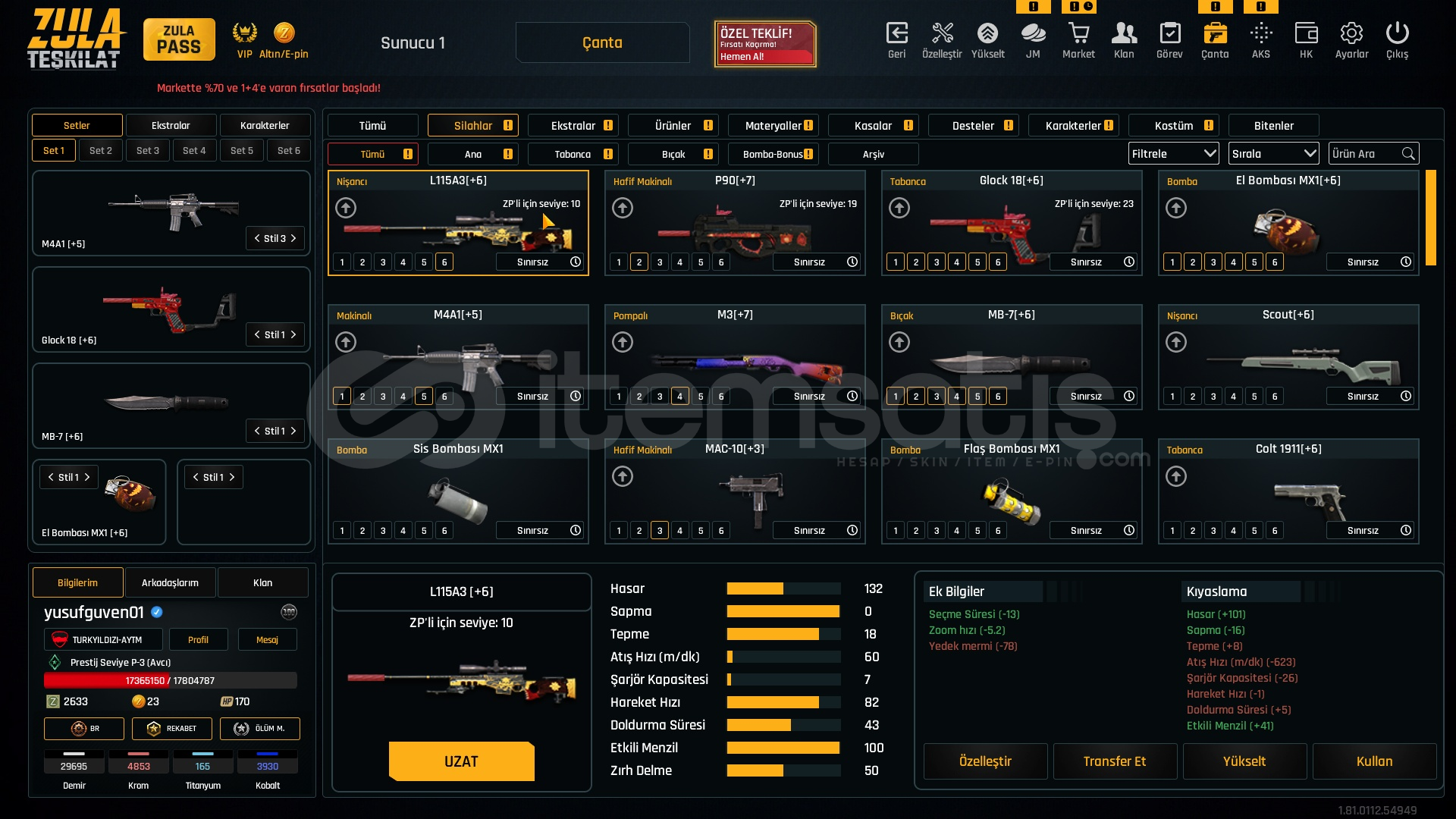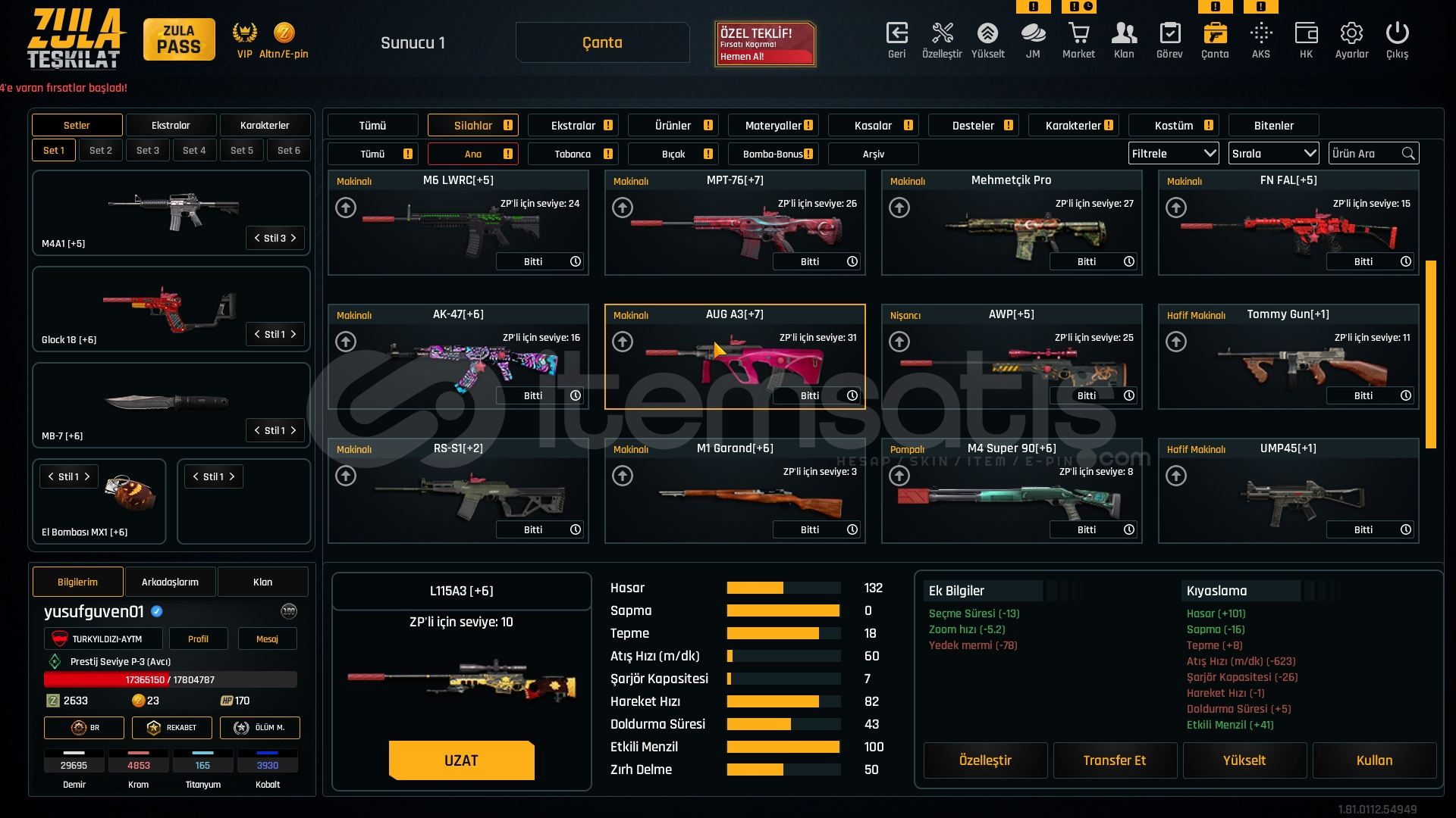 Metalar gördügünüz gibi full + full özelleştirmeli hesap +6 +7 setlerle cok iyi bir hesaptır bu hesap alın ömürlük almayan pişman olur. FİYATA COK ZOR.