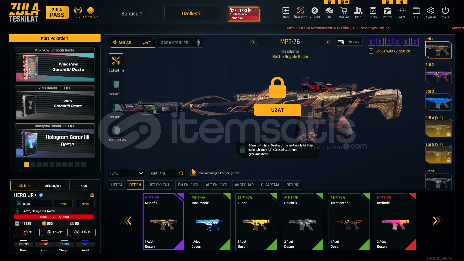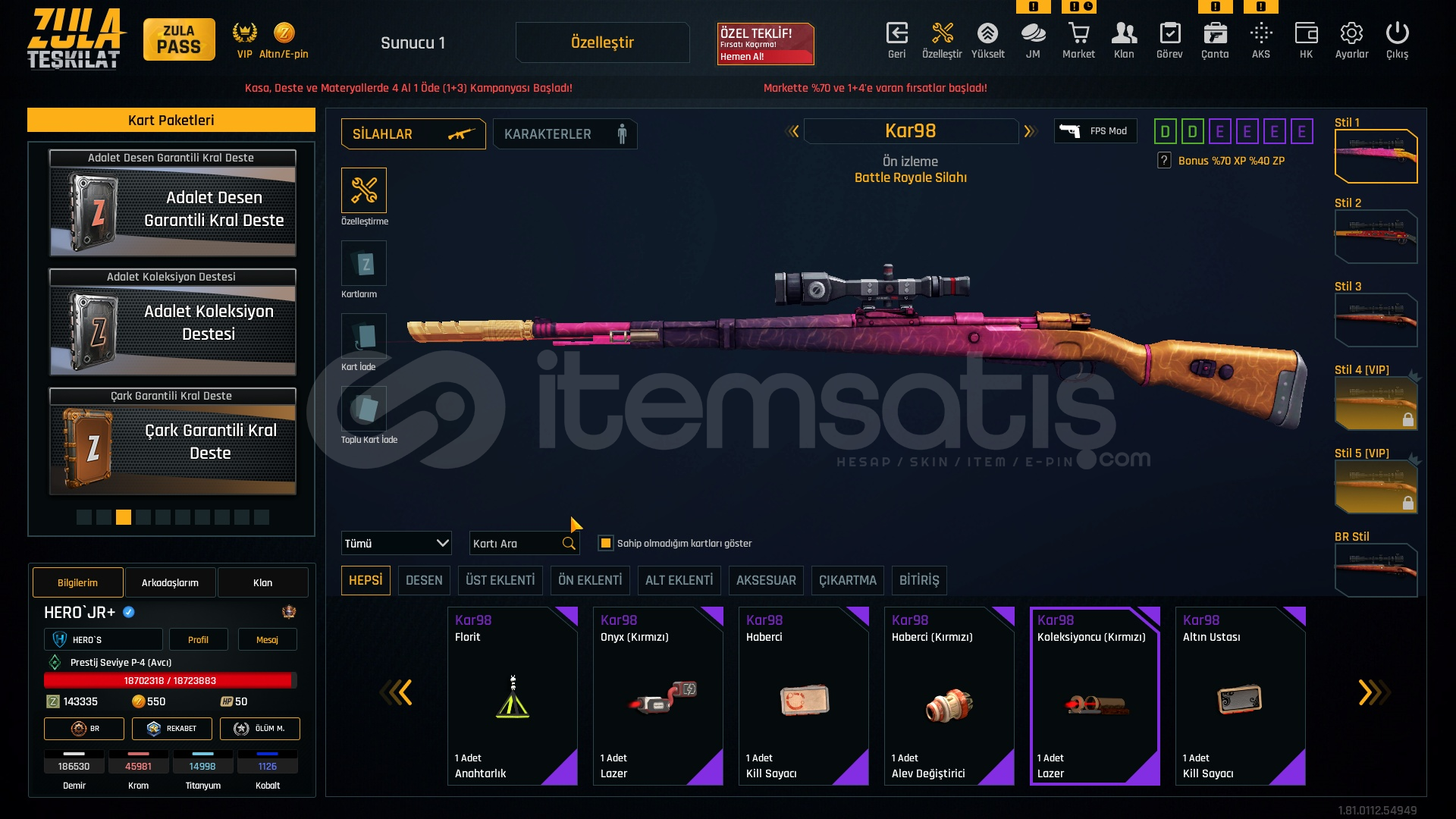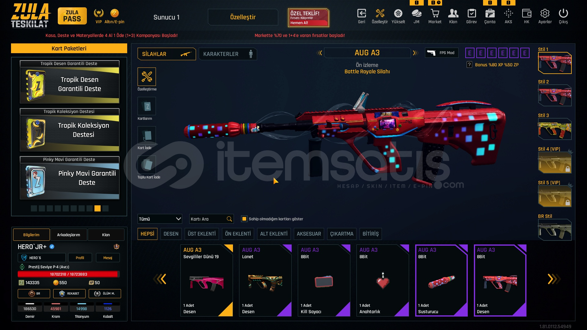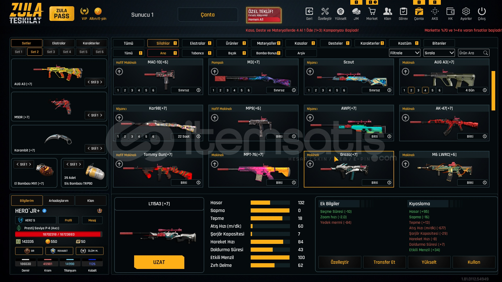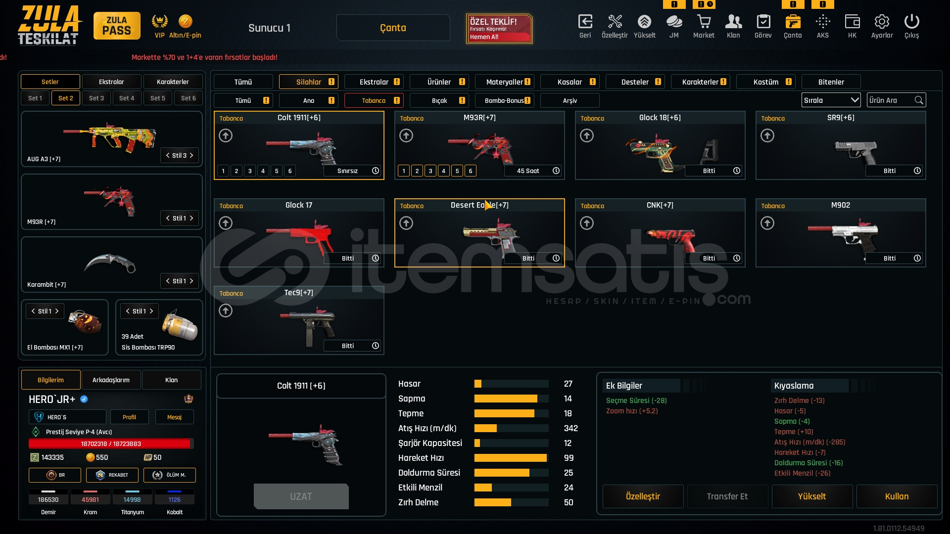 Metalar gördügünüz gibi full + full özelleştirmeli hesap +6 +7 setlerle cok iyi bir hesaptır bu hesap alın ömürlük almayan pişman olur. FİYATA COK ZOR.