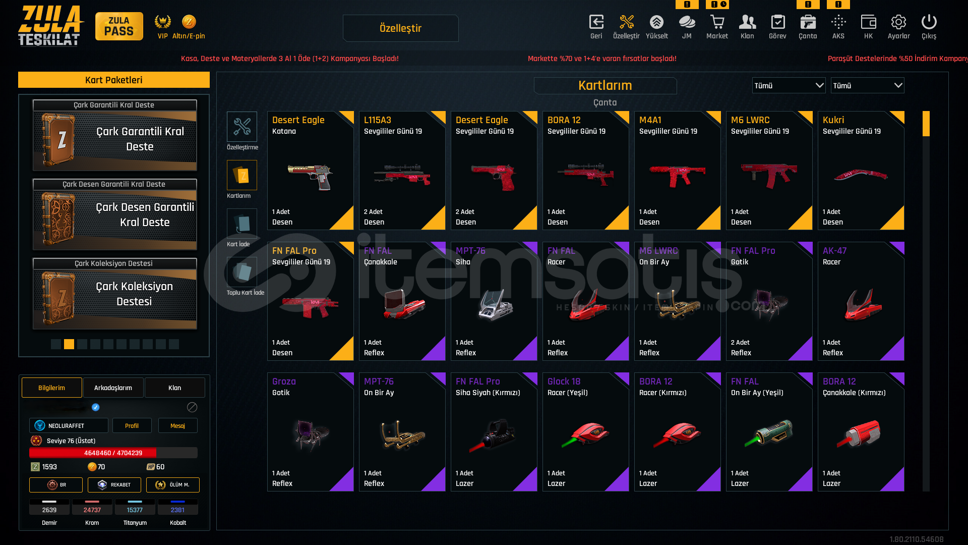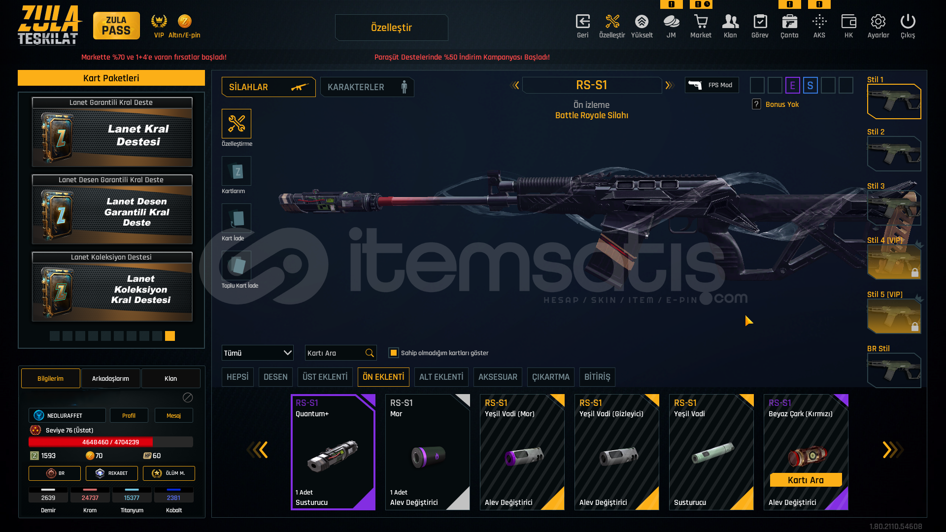👑 HESAP 76 SEVİYEDİR.👑 RANK : ELMAS🎨 RS-S1 QUANTUM+🎨 L115A3 EŞSİZ SEVGİLİLER GÜNÜ DESEN🎨 DESERT EAGLE EŞSİZ SEVGİLİLERİ GÜNÜ DESEN🎨 AUG-A3 LANET DESEN🎨 AK-47 TROPİK DESEN🎨 DESERT EAGLE EŞSİZ KATANA DESEN🎨 M6LWRC EŞSİZ SEVGİLİLER GÜNÜ DESEN🎨 LANET DESENLER🎨 M4A1 E#...