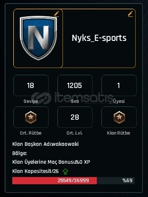 1205 SIRALAMALI 18 SEVİYE KÖKLÜ ESPOR KLANI