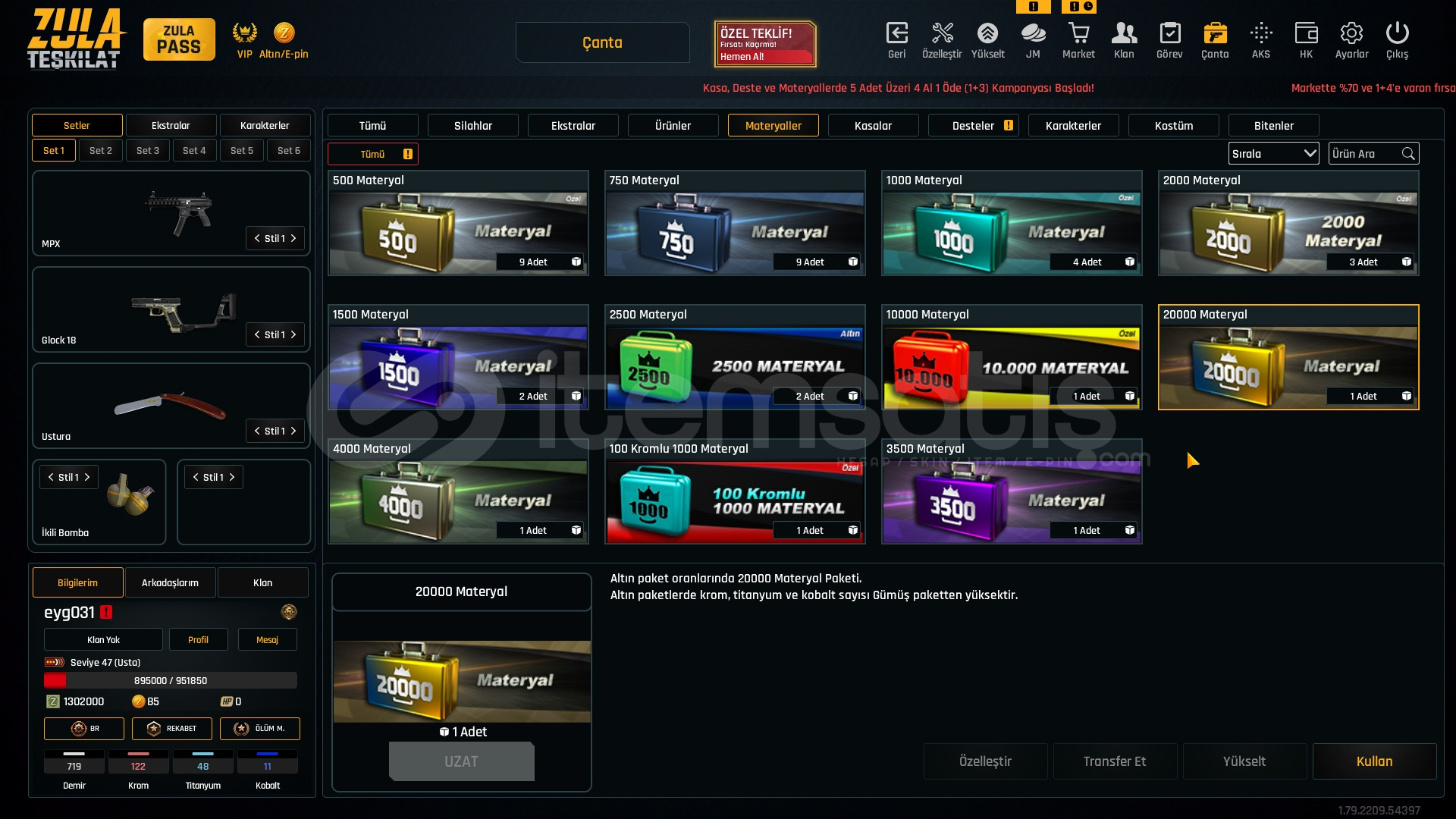1.3M ZP + 69K Materyalli Zula Hesabı