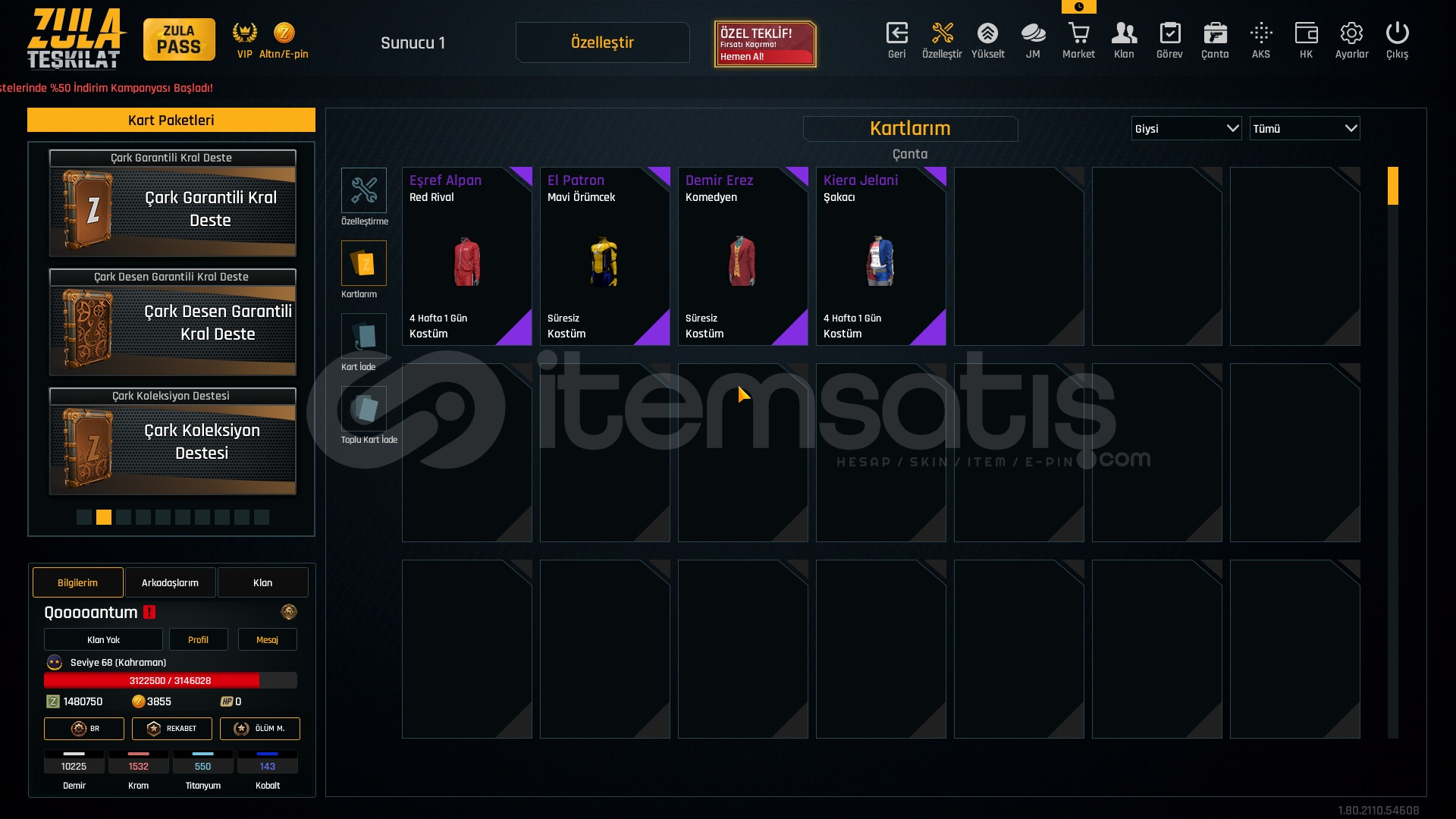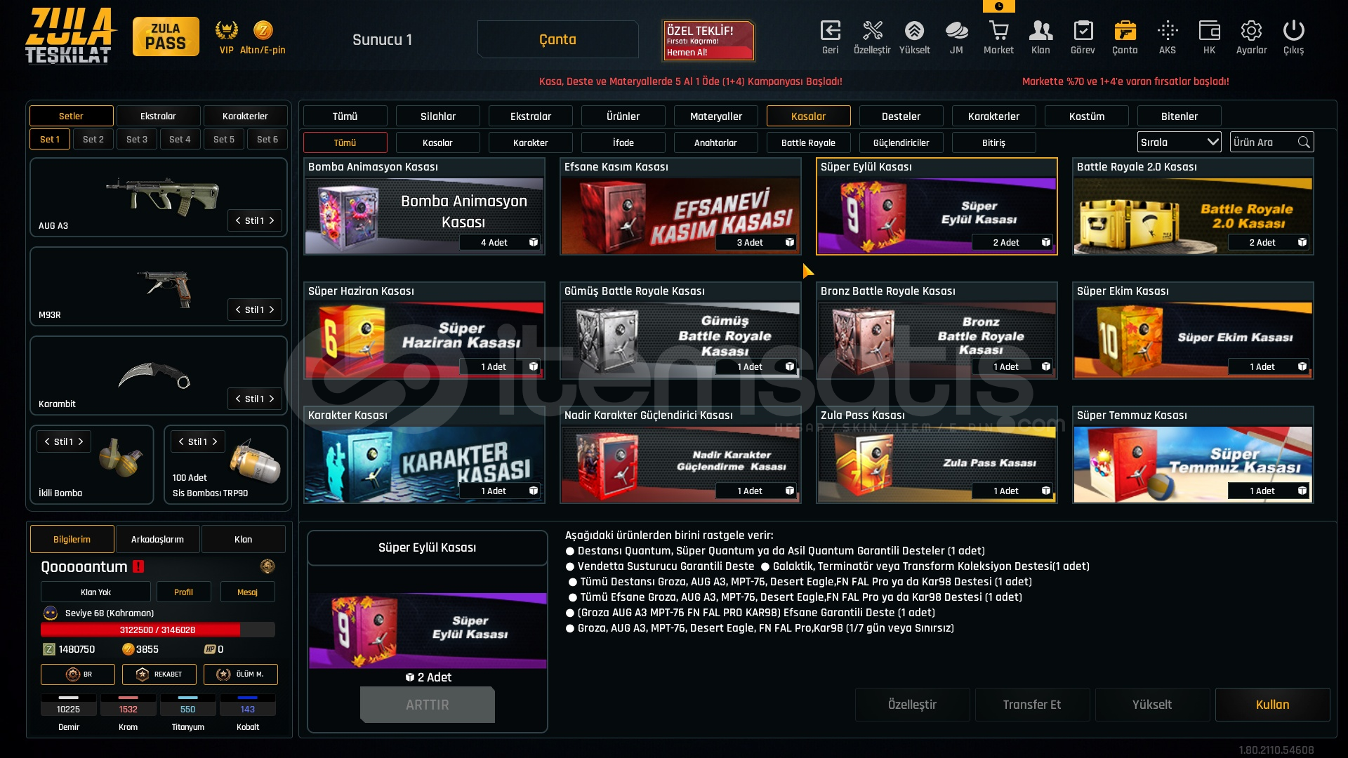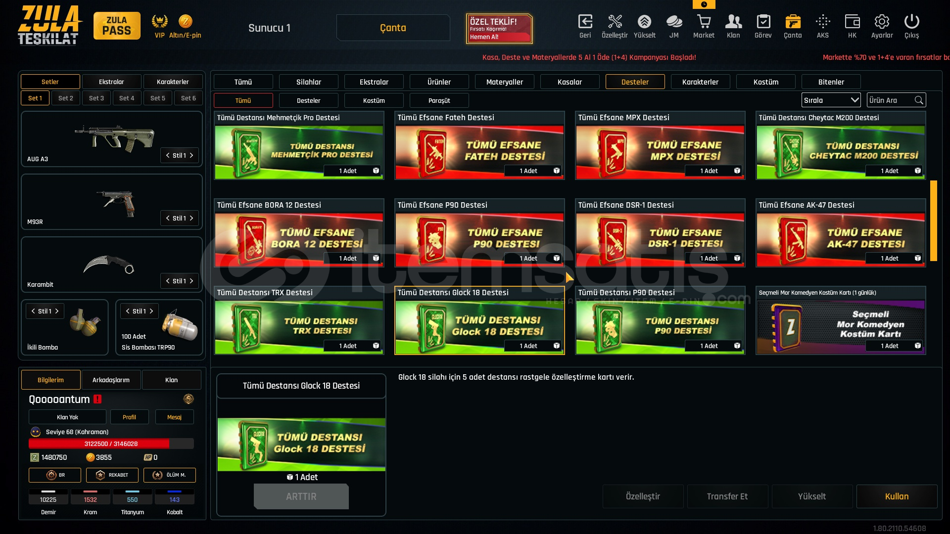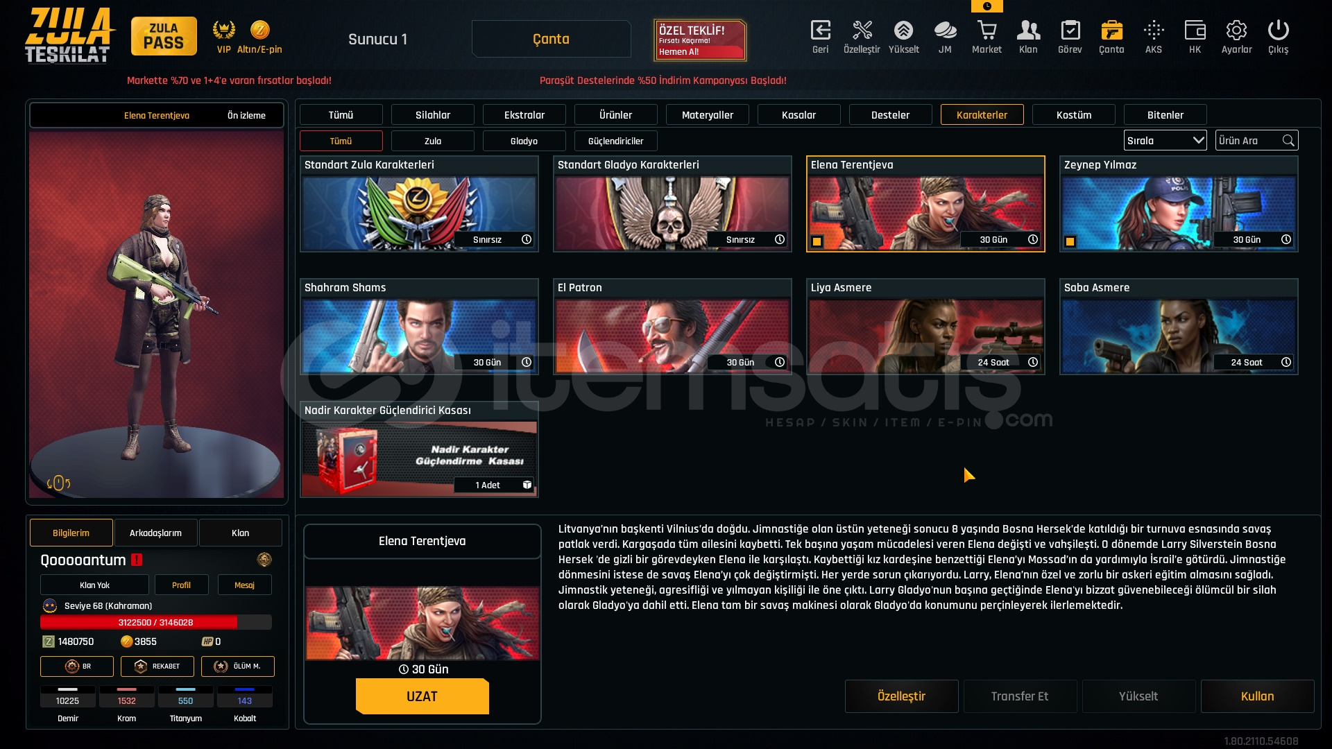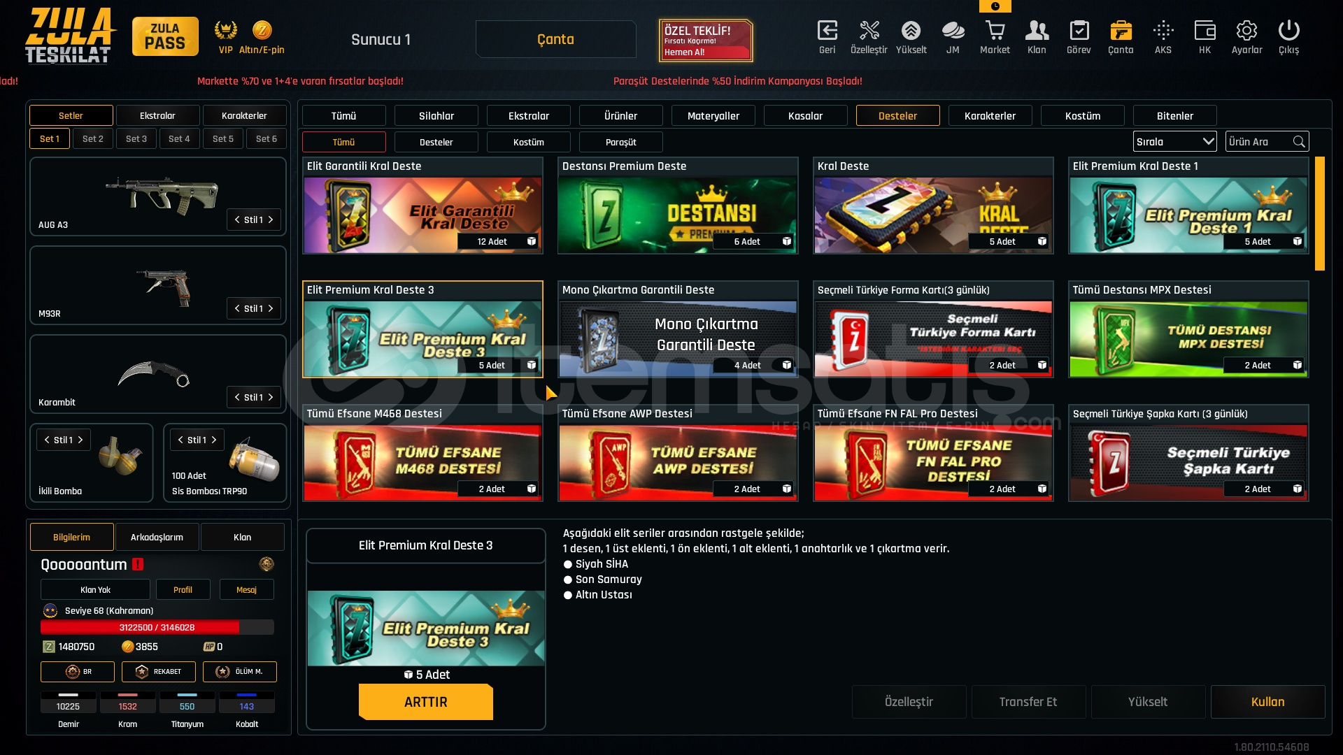 1.5M ZP + 150K Materyal + 68 Seviye Zula Hesabı