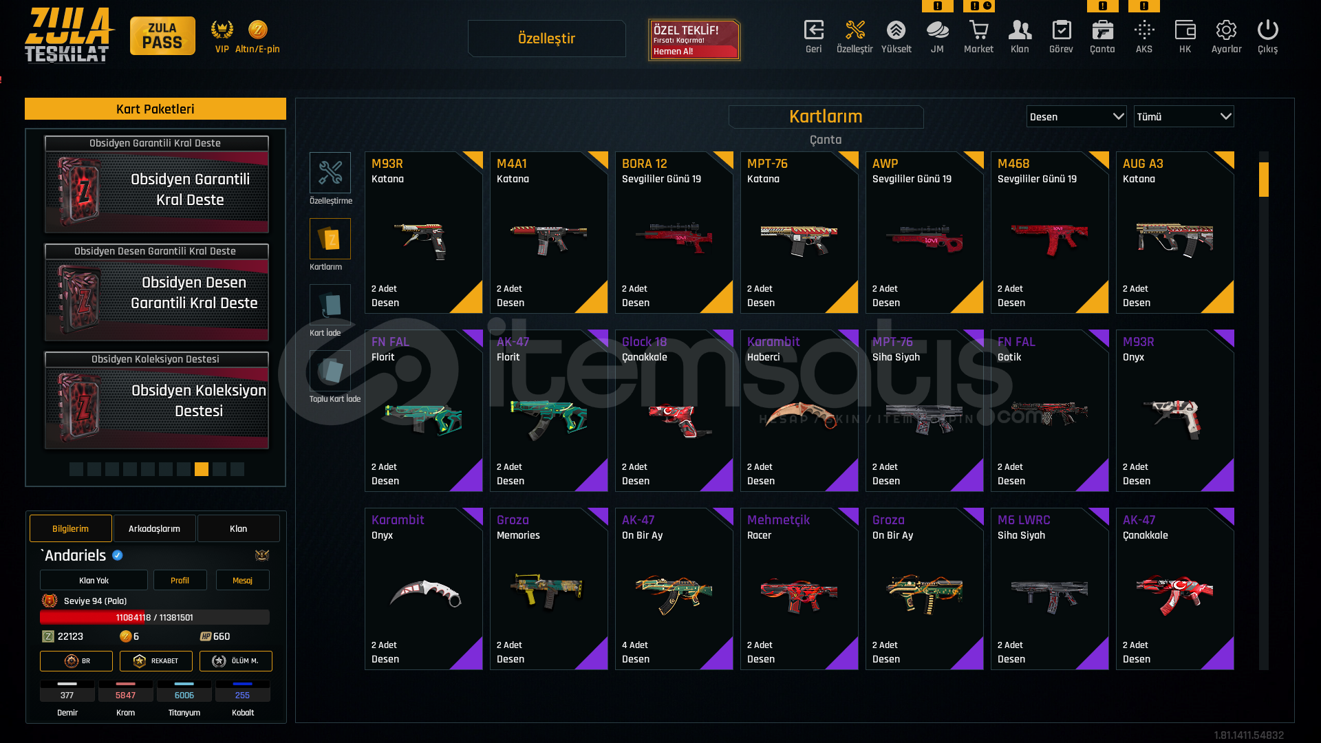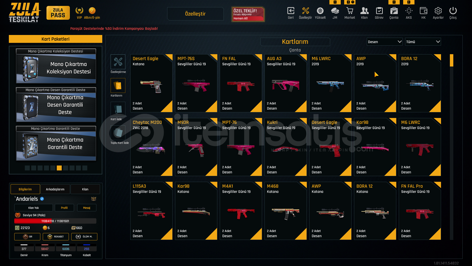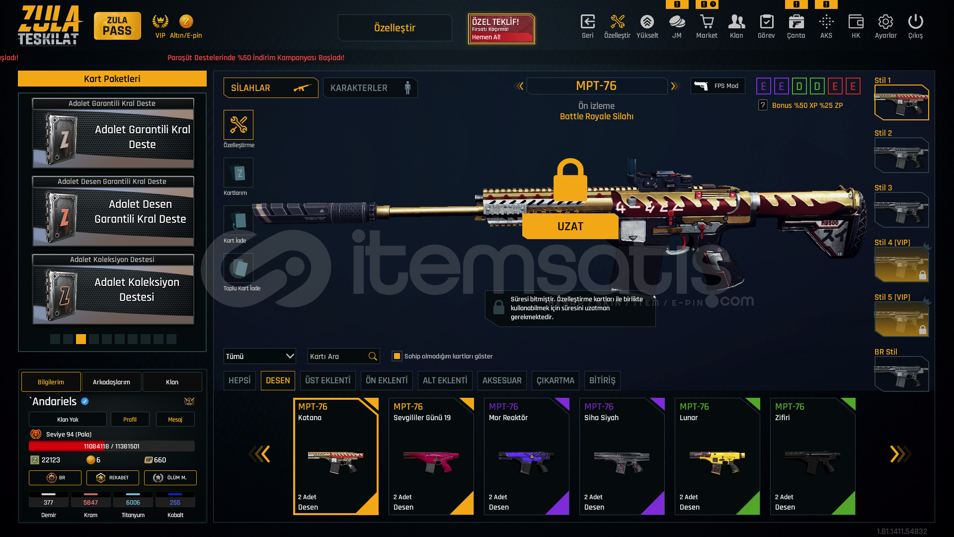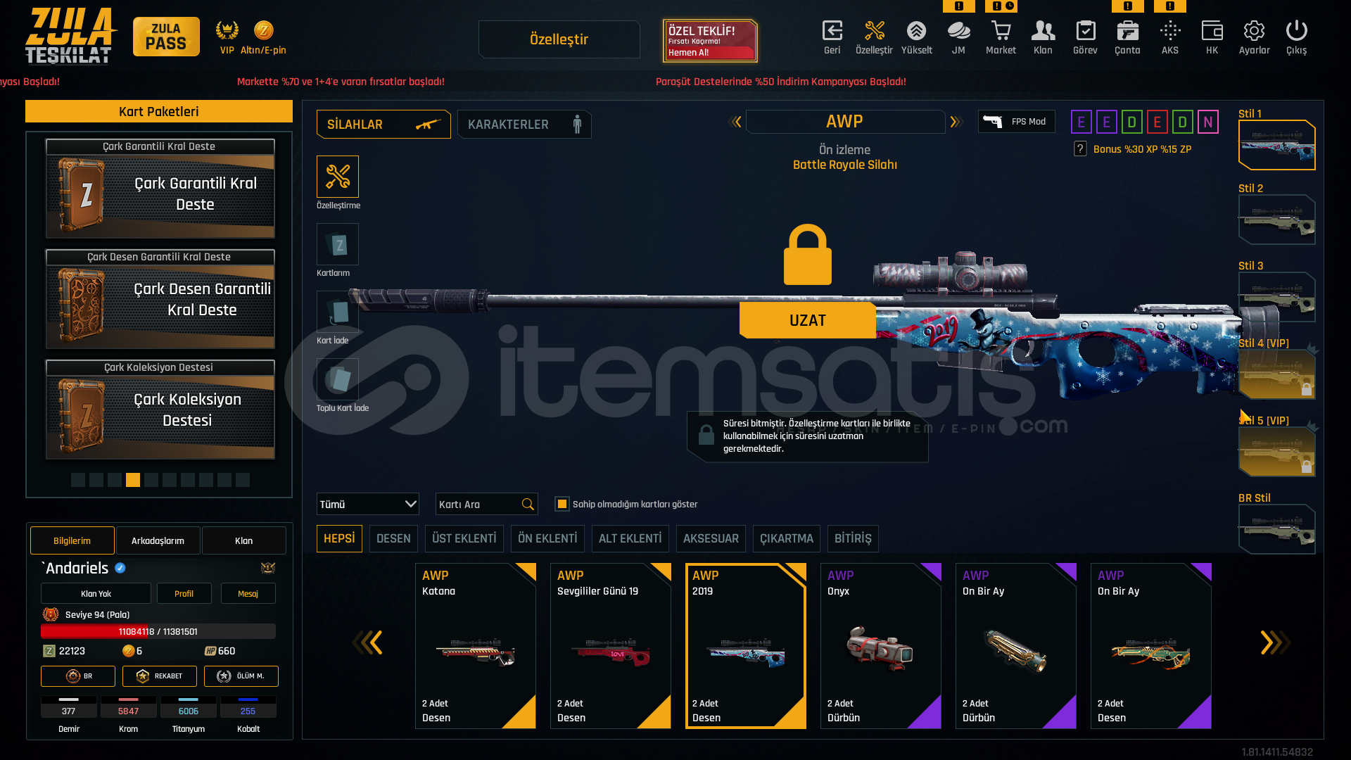 👑 HESAP 94 SEVİYEDİR.👑 BİNLERCE LİRA VE EMEK HARCANMIŞTIR.👑 RANK : ALTIN🎨 CHEYTAC M200 ZWC 2018 DESEN!!!!🎨 AWP 2019 DESEN!!!🎨 M6 LWRC 2019 DESEN!!!🎨 BORA 12 2019 DESEN!!!🎨 MPT-76 SEVGİLİLER GÜNÜ DESEN🎨 AWP SEVGİLİLER GÜNÜ DESEN🎨 M468 SEVGİLİLER GÜNÜ DESEN🎨 KAR98 SEVGİL...