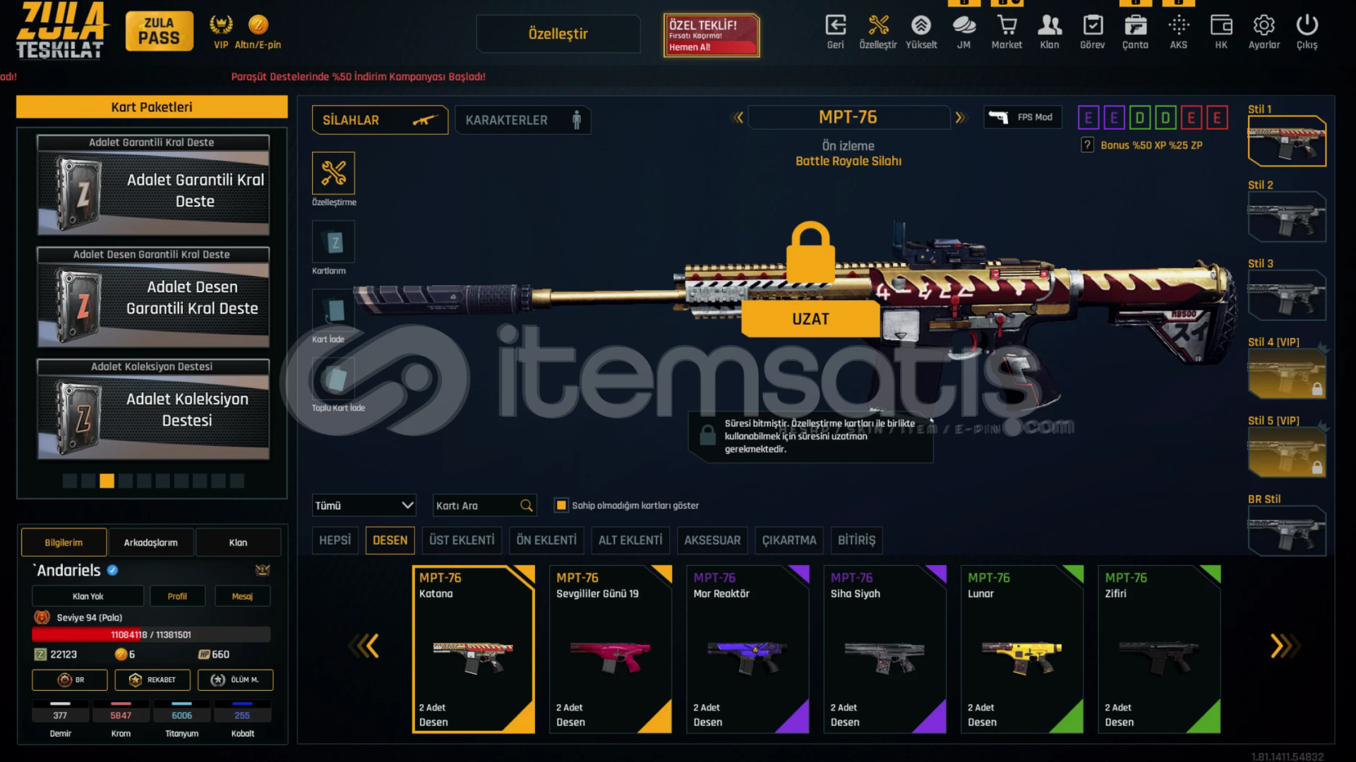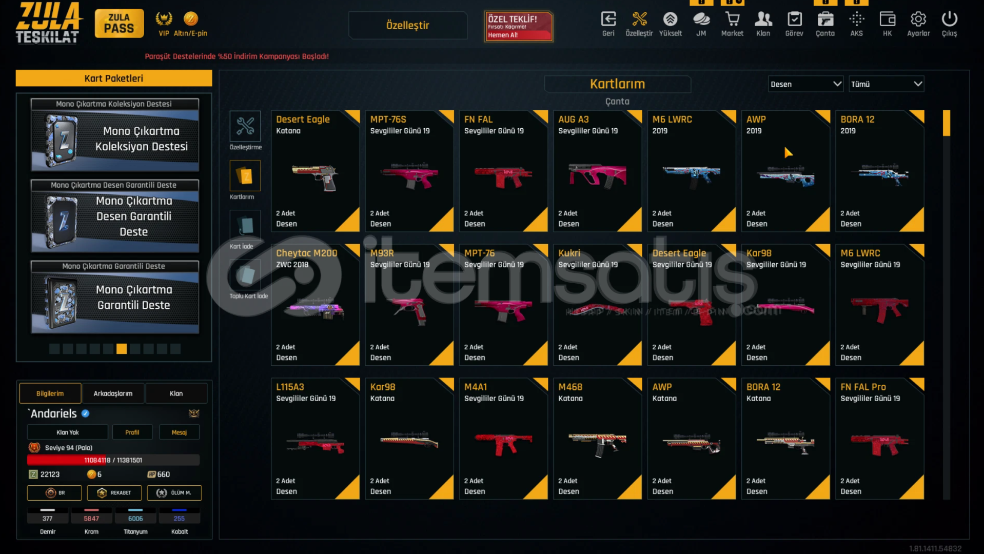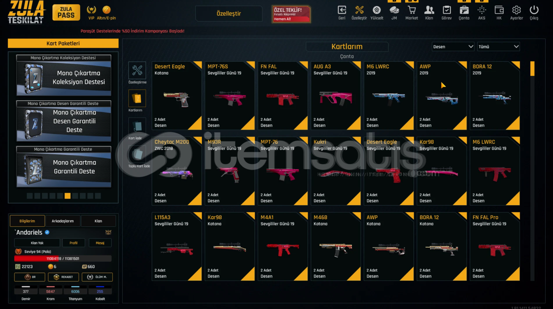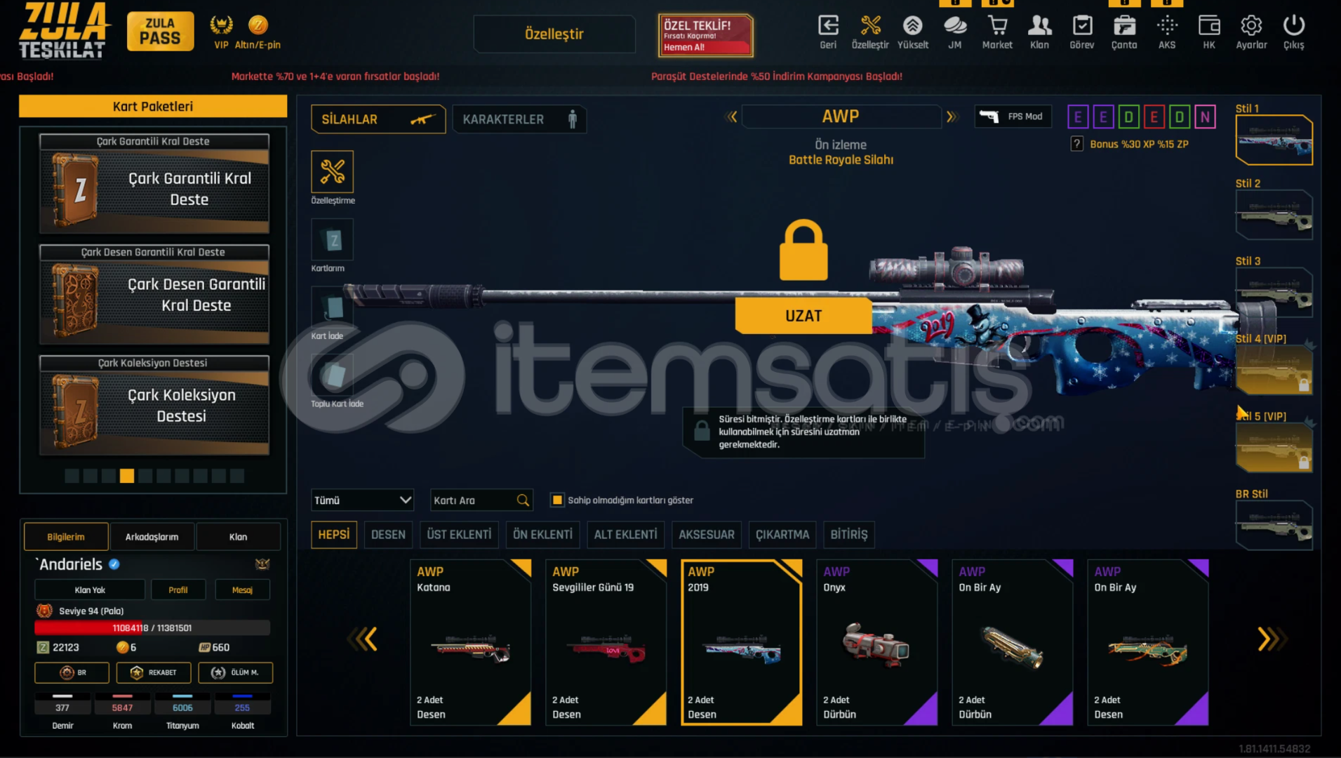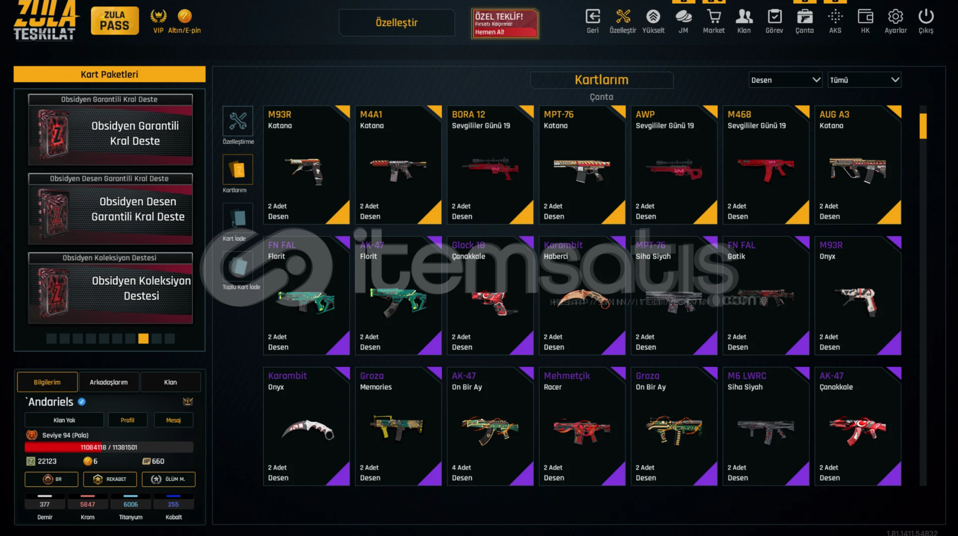 👑 HESAP 94 SEVİYEDİR.👑 BİNLERCE LİRA VE EMEK HARCANMIŞTIR.👑 RANK : ALTIN🎨 CHEYTAC M200 ZWC 2018 DESEN!!!!🎨 AWP 2019 DESEN!!!🎨 M6 LWRC 2019 DESEN!!!🎨 BORA 12 2019 DESEN!!!🎨 MPT-76 SEVGİLİLER GÜNÜ DESEN🎨 AWP SEVGİLİLER GÜNÜ DESEN🎨 M468 SEVGİLİLER GÜNÜ DESEN🎨 KAR98 SEVGİLİLER GÜNÜ DESEN🎨 AUG A3 SEVG&#...