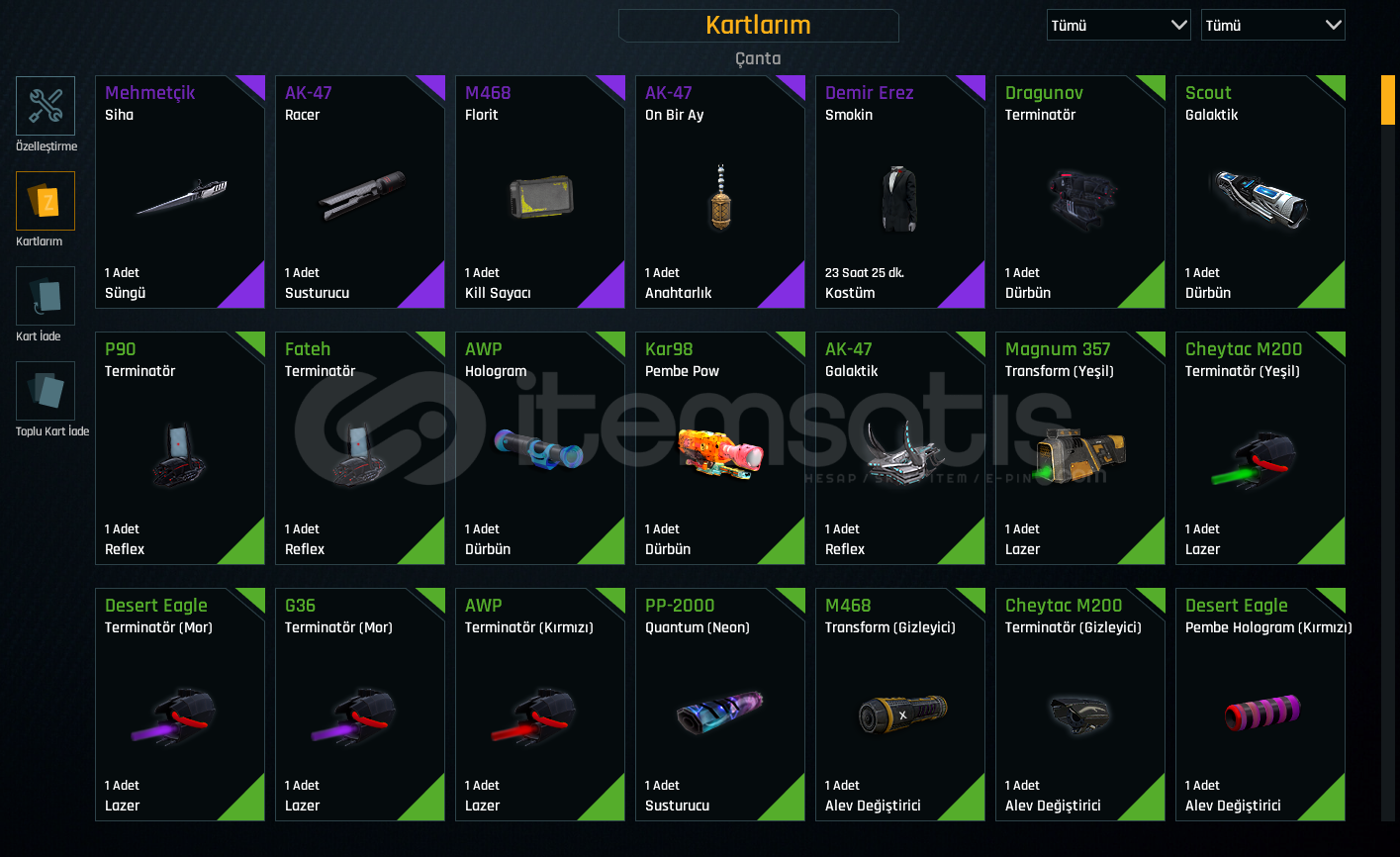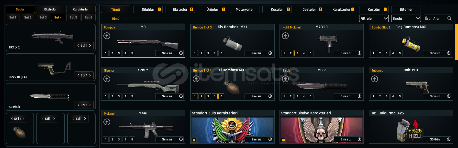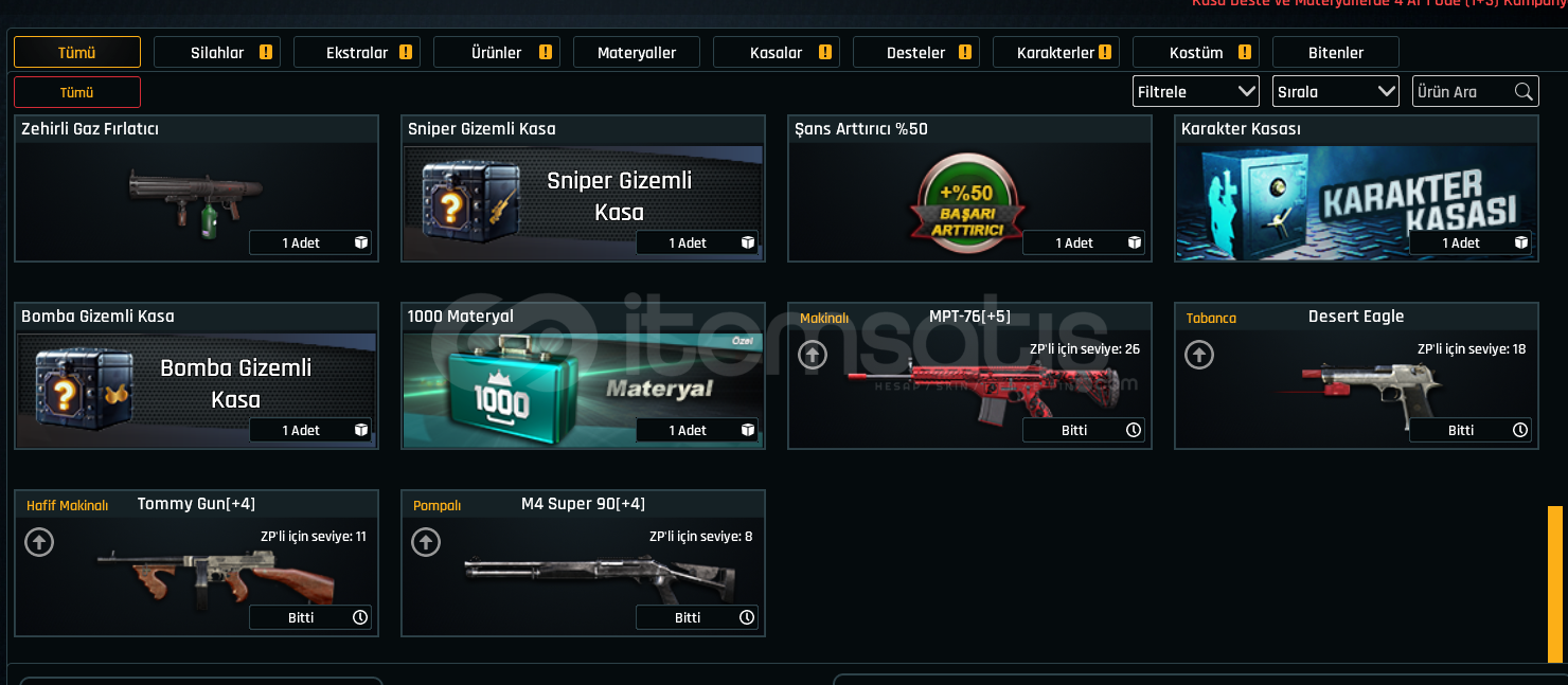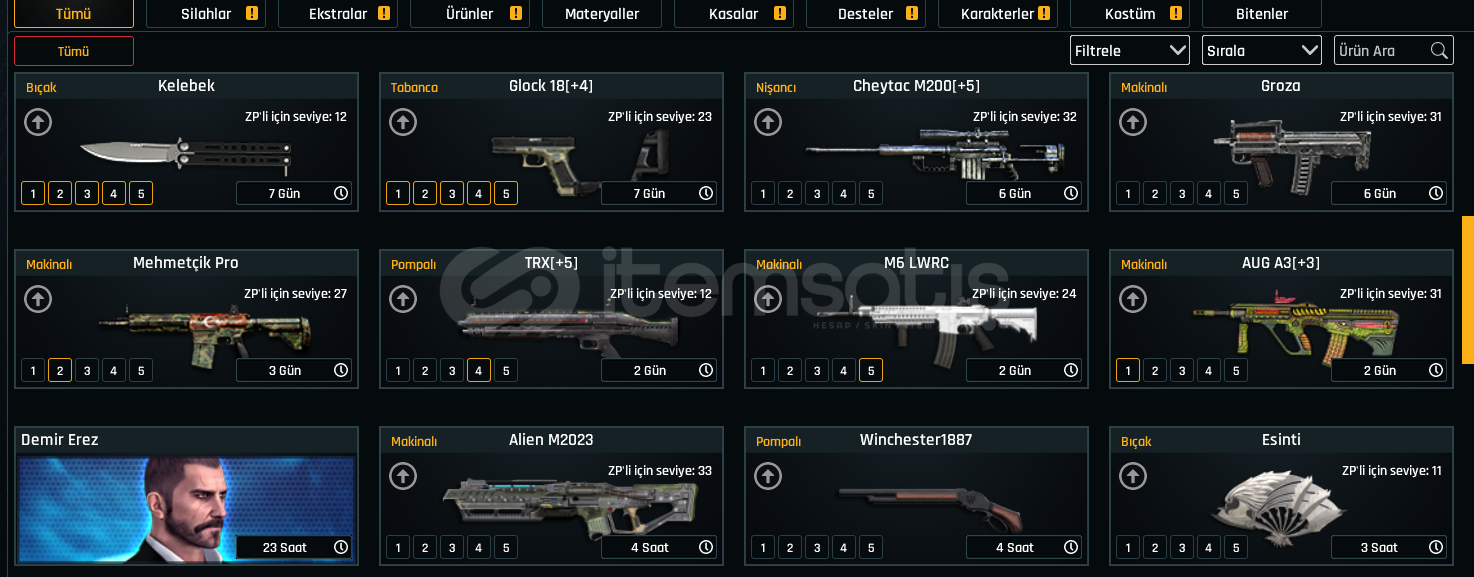 Rekabet oynamak için ucuz yollu hesap. 0 dan başlamak yerine alınabilir. Susturma yokturTEL/MAIL BOSTAMPT-76 +5TRX +5CHEYTAC M200 +5GLOCK 18 +4M4 SUPER 90 +4TOMMY GUN +4AUG A3 +3