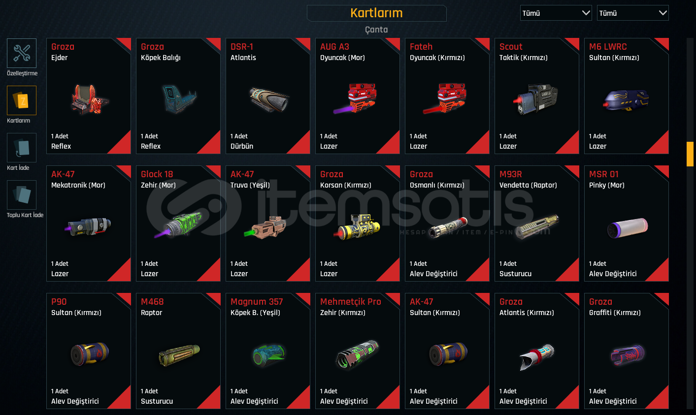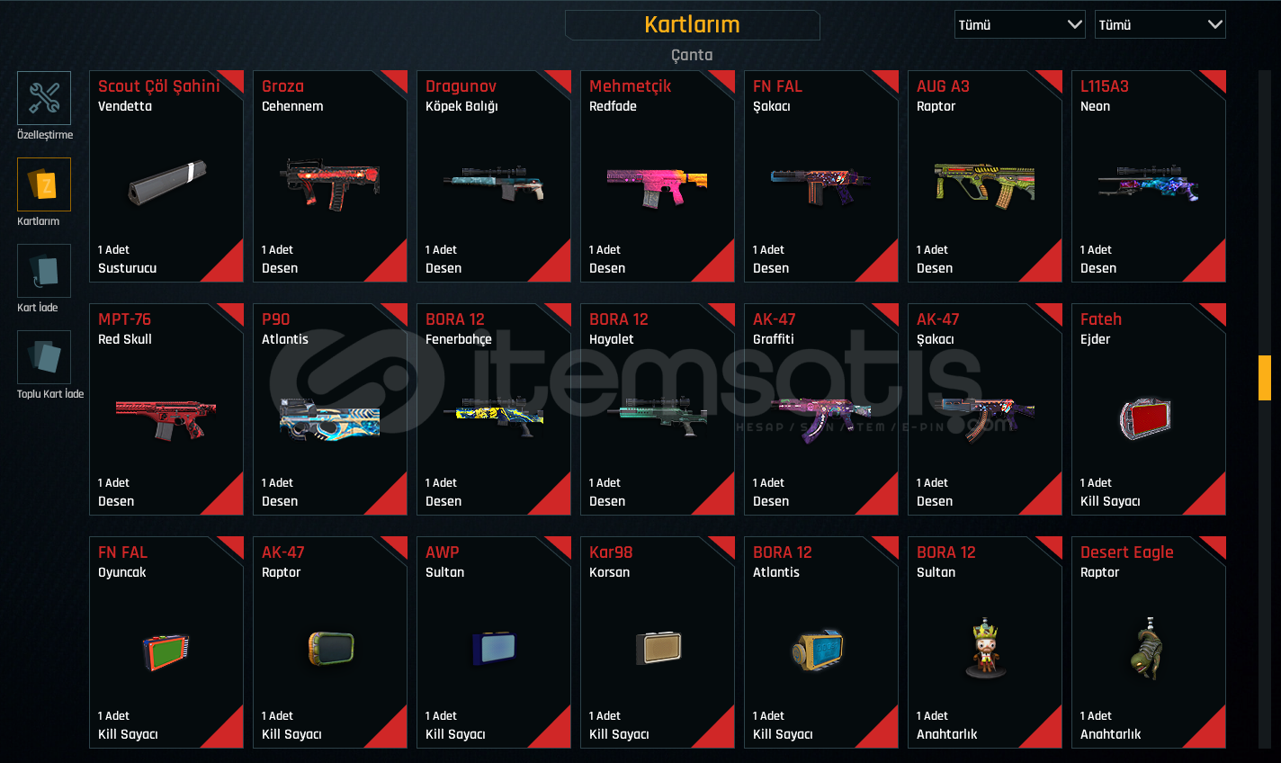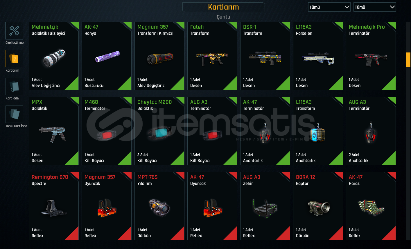 Rekabet oynamak için ucuz yollu hesap. 0 dan başlamak yerine alınabilir. Susturma yokturTEL/MAIL BOSTAMPT-76 +5TRX +5CHEYTAC M200 +5GLOCK 18 +4M4 SUPER 90 +4TOMMY GUN +4AUG A3 +3