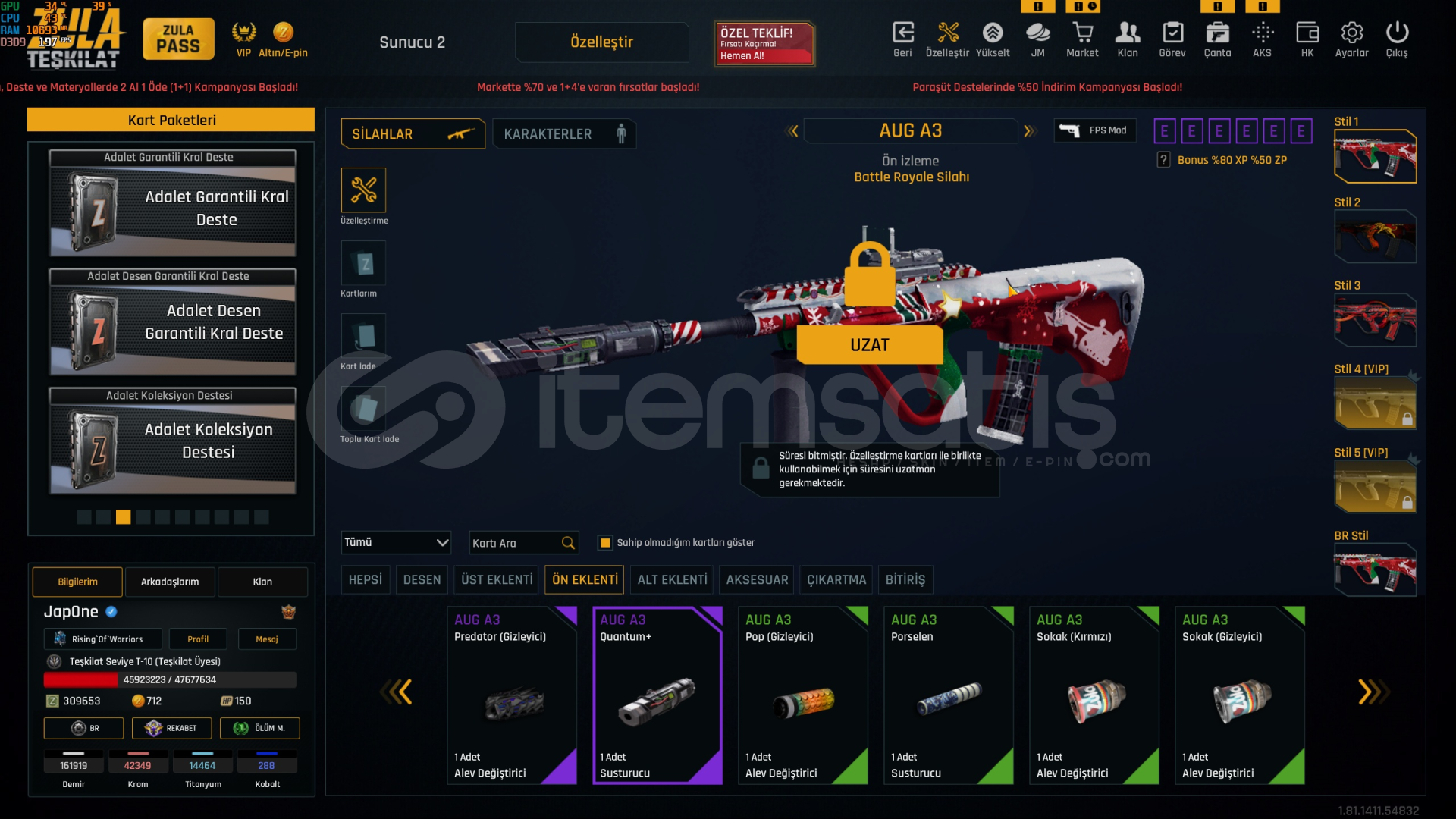 3 kere şampiyon olmş güncel silahların nerdeyse tamamının +7 oldduğu hesab; +7 aug quantum plus 2020 yeni yıl desen+7 rs s1 2 adet qantum +7 mpt +7 kar +7 l115a3 +7 karambit ustura kelebek kurt deagle m4super90 +7 atak +7 storm+7 cnk +7 sr9sınırsızlar;ustura tepme azaltıcı %10 %10 çelik yelek %25 şarzör ddeğiştirme ump45 memetçik fn fal mpt76s ustra deagle m93r esktra şarjör zeynep el pat...