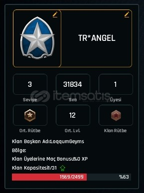 GÜNCEL KLAN SIRALAMASI: 31834KLAN SEVİYESİ: 3KLAN AÇILIŞ TARİHİ: 12.08.2020İLANI SATIN ALDIĞINIZDA BİLDİRİM GELİR HEMEN TESLİM EDERİM. (KLAN SİZİN HESABINIZA DEVREDİLİR.)**+600 SATIŞ TECRÜBEMİZ İLE KALİTEMİZDEN ASLA ÖDÜN VERMEDİK, DEWİXSHOP GARANTİSİYLE GÖNÜL RAHATLIĞIYLA ALIŞVERİŞ YAPABİLİRSİN...