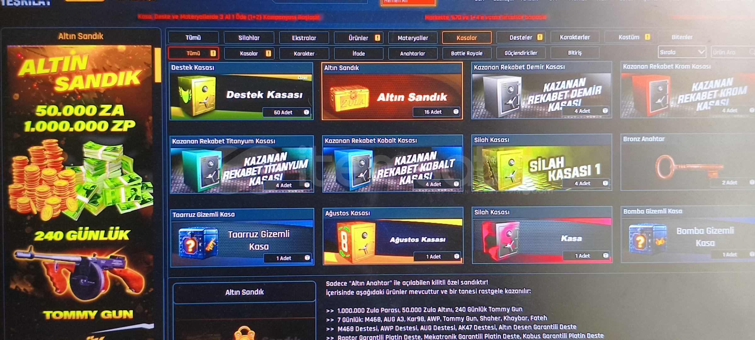 16 âdet altın sandık altın sandıktan 50 k za çıkabiliyor ve 1 milyon da zp çıkabiliyor