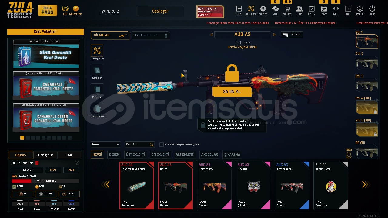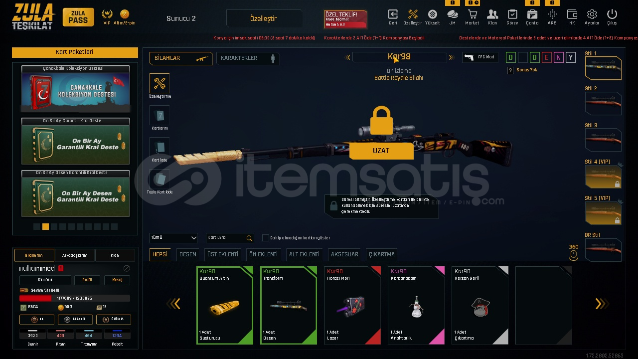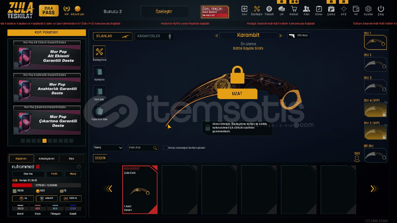 ⭐️+5 SETLİ İDEAL TEL MAİL DEĞİŞEN⭐️LVL- 51⭐️SINIRSIZ - MEHMETÇİK +5⭐️+5 GROZA⭐️+5 M93R⭐️+5 KARAMBİT⭐️+4 KAR98⭐️TELEFON NUMARASI DEĞİŞİYOR⭐️MAİLİ DEĞİŞİYOR