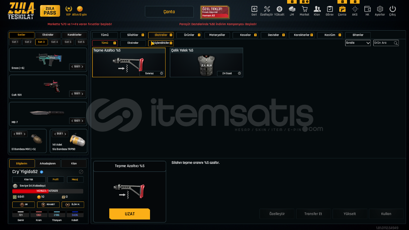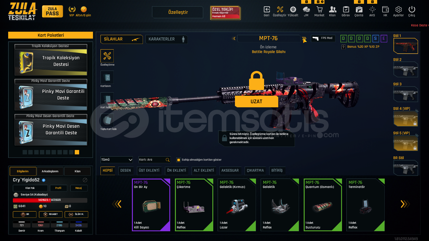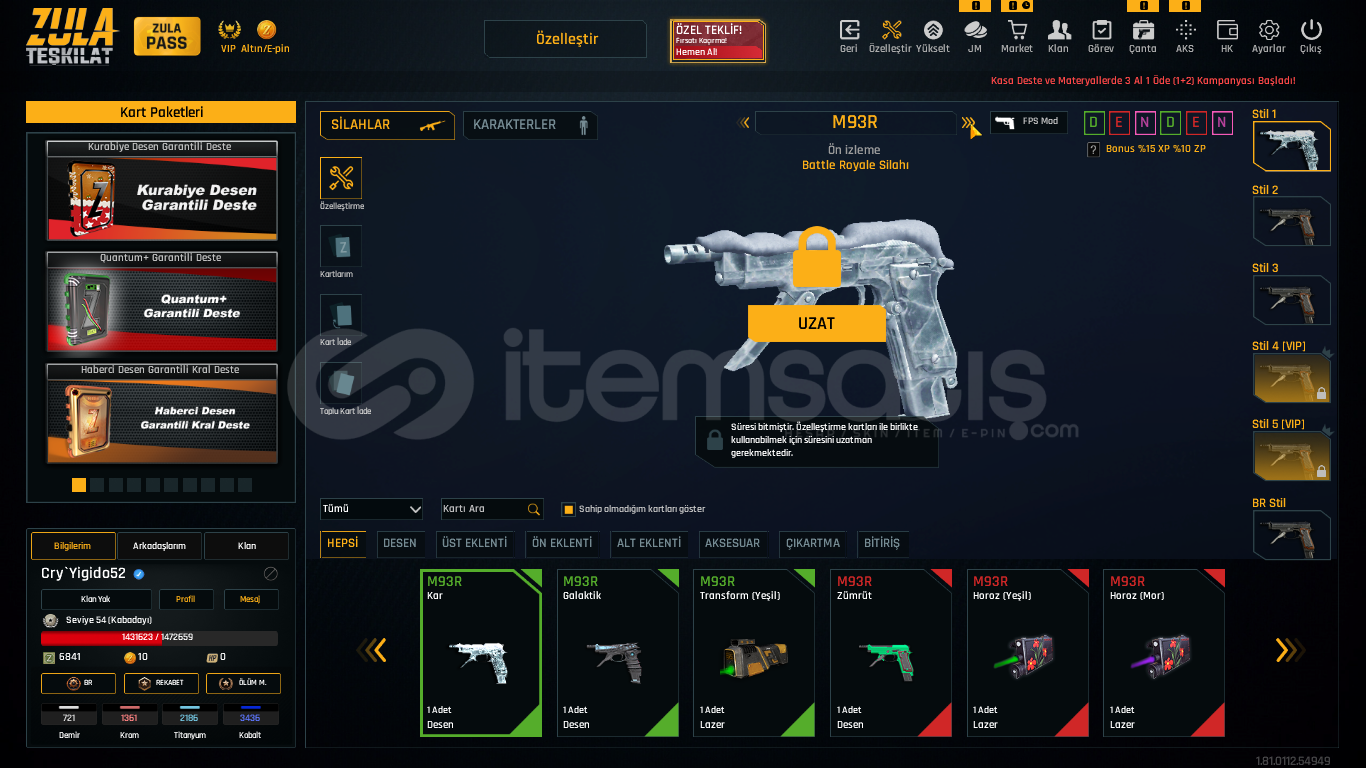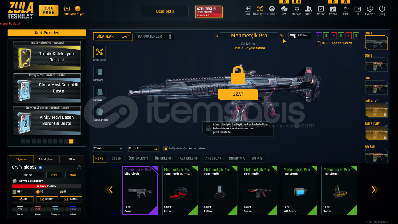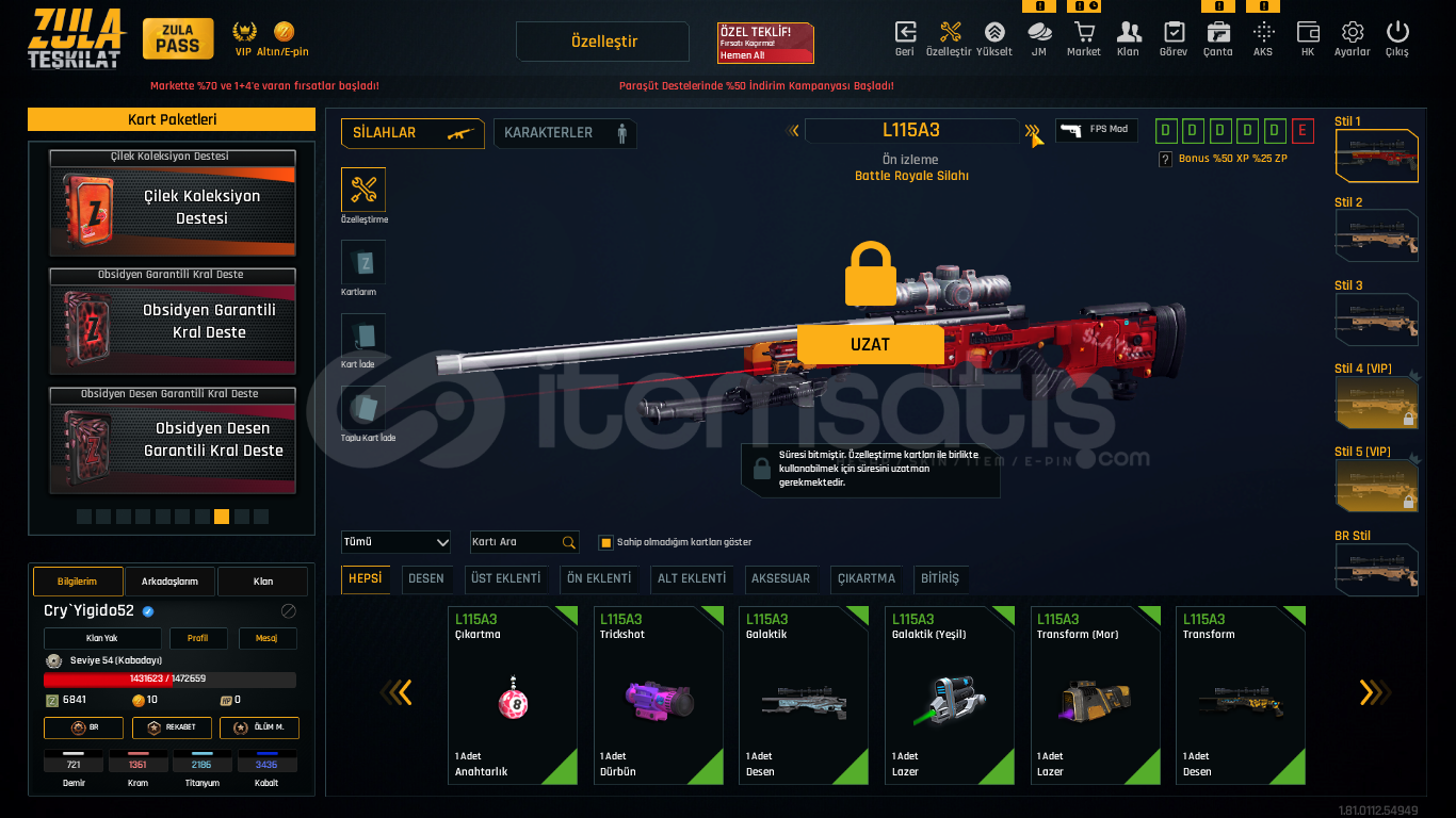 54 LEVELDİRTEL MAİL SAĞLAMDIR ALICI KİŞİYE DEVREDİLECEKTİREŞSİZ DESENLERDESTANSI KARTLAR EFSANEVİ KARTLAR BOLCA BULUNURGÜZEL ÖZELLEŞTİRMELİ HESAPTIR---SİLAH ARTILARI---MPT-76 +6AUG A3 +5L115A3 +6GROZA +6KAR98 +1BORA 12 +6AK47 +6MAC10 +5SCOUT +6M93R +6GLOCK 18 +3KARAMBİT +6USTURA +6İKİLİ BOMBA +5EL BOMBASI +5YAZILMAYANLAR VARDIR2 ADET İSİM DEĞİŞTİRME KARTISINIRSIZ...