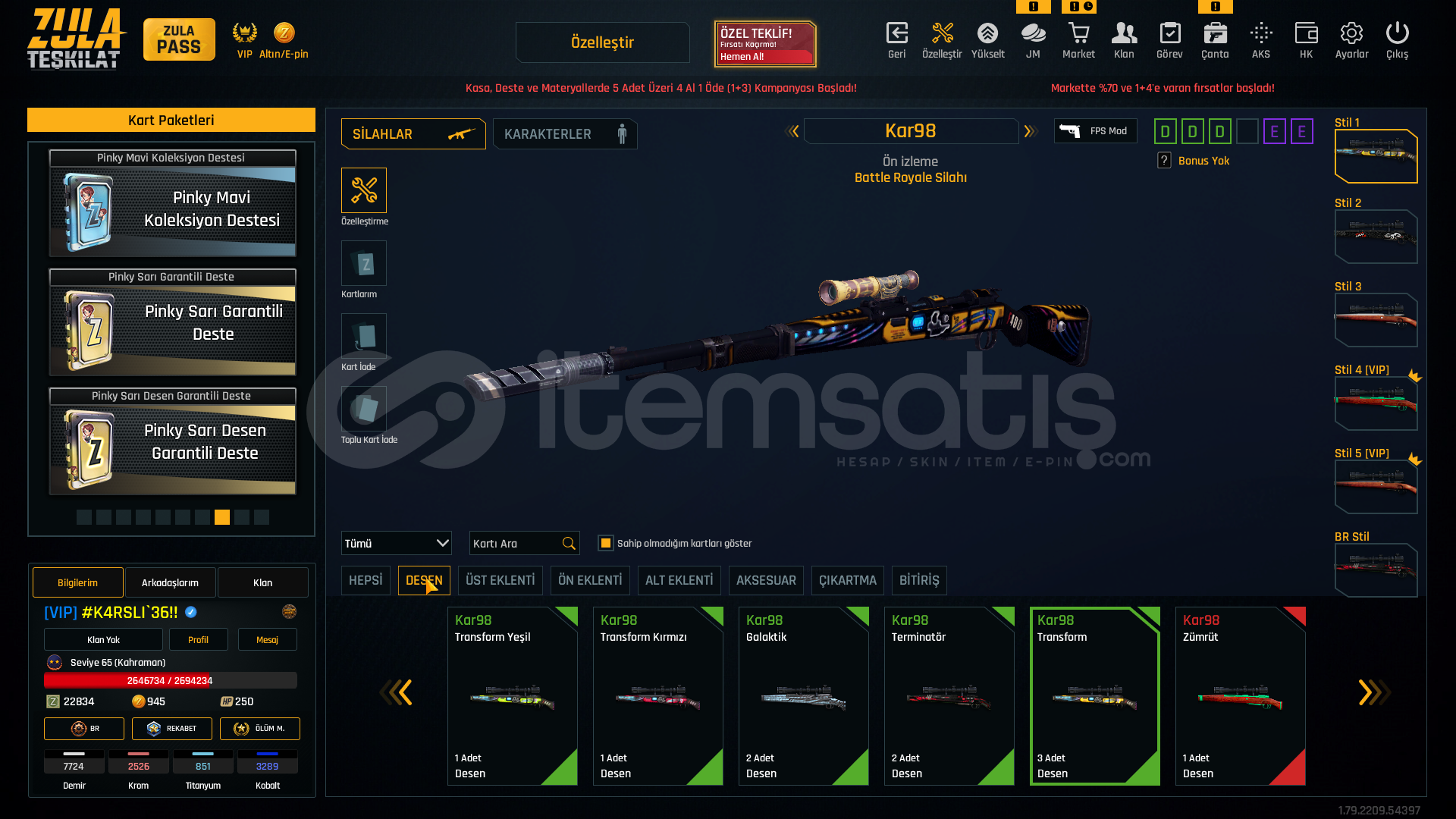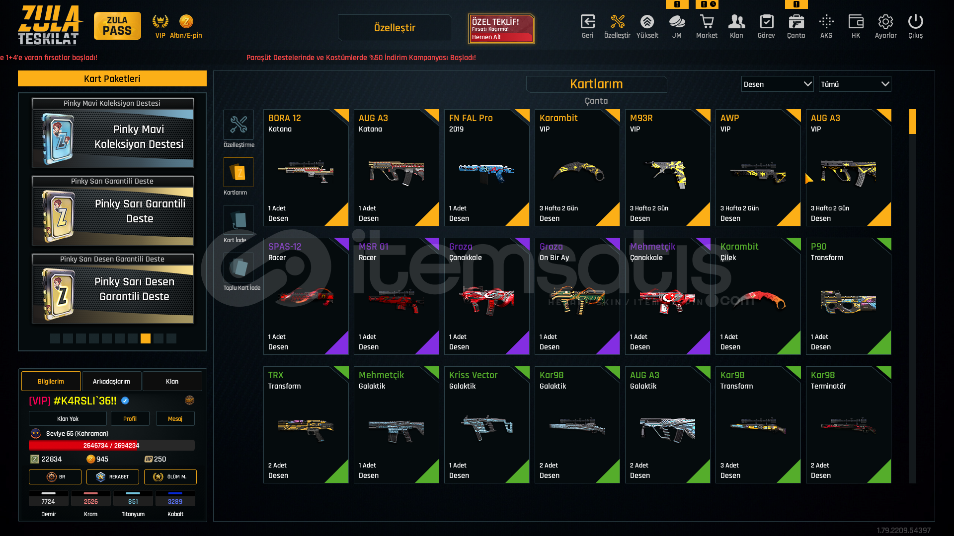 🔰 𝗛𝗘𝗦𝗔𝗣 𝗗𝗘𝗧𝗔𝗬𝗟𝗔𝗥𝗜:• 🧿 𝐒𝐞𝐯𝐢𝐲𝐞: 𝟔𝟓 • 🏆 𝐑ü𝐭𝐛𝐞: 𝐄𝐋𝐈𝐓 • 🎫 𝐒𝐞𝐳𝐨𝐧 𝐏𝐚𝐬𝐬: 𝐕𝐚𝐫 (𝐊𝐚𝐝𝐞Ү...